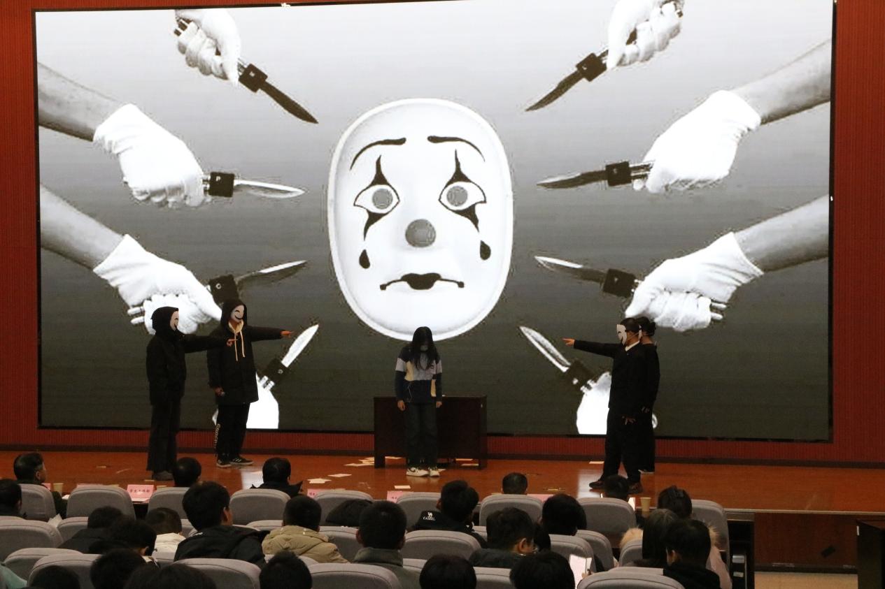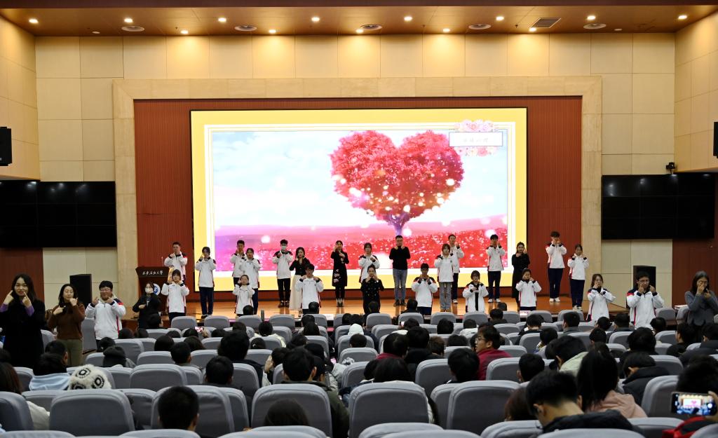 大家共同观看了心理育人工作成果汇报演出。音乐系同学带来的与专业特长相结合的心理情景剧《成长的岔路口——与嫉妒和解》作为开场演出。电子工程学院智能2301班心理委员袁敏佳为大家展示了主题班会《告别社恐爱上沟通》。马克思主义学院的研究生们为大家演出了心理情景剧《焕》。计算机学院大一的同学们出演了心理情景剧《撕开迷雾》。心理专干、心理中心教师与心理委员联合协会、心理协会的同学们共同出演了手语舞《感恩的心》。