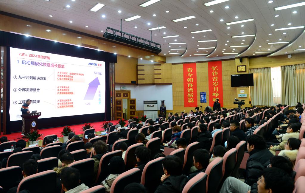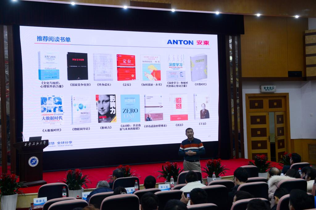 捐赠仪式后,罗林以《新时代,新物种,走在时代前列—创造伟大的公司,培养伟大的人才》为题为同学们作了一场精彩报告。他从安东集团的经营理念创新、产业布局创新、商务模式创新、技术改革创新、人才赋能创新、企业文化沉淀等六个方面介绍了安东石油服务集团的创新发展历程,分享了艰苦创业如何不断突破新的边界、不断走出舒适区和人才快速成长的基本原理等内容。
