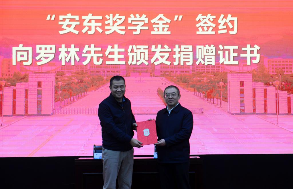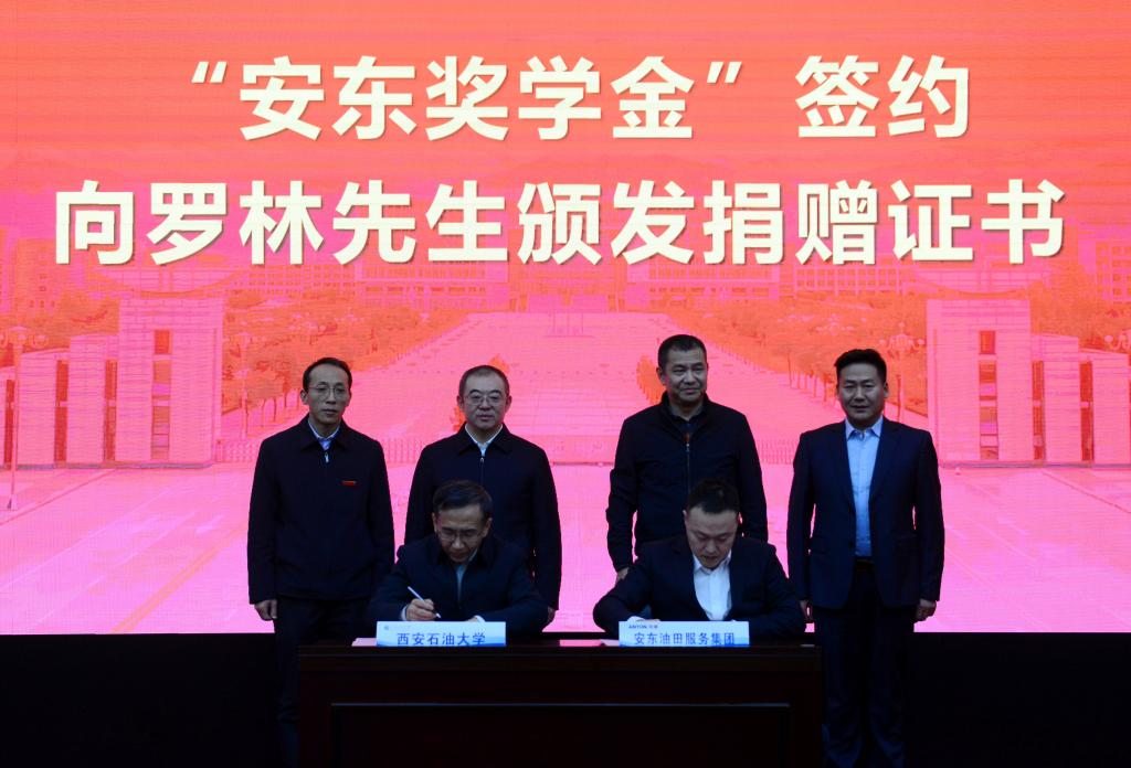 会上,常江向罗林颁发了捐赠证书,张木代表学校与安东油田服务集团副总裁王照周共同签署了捐赠协议。