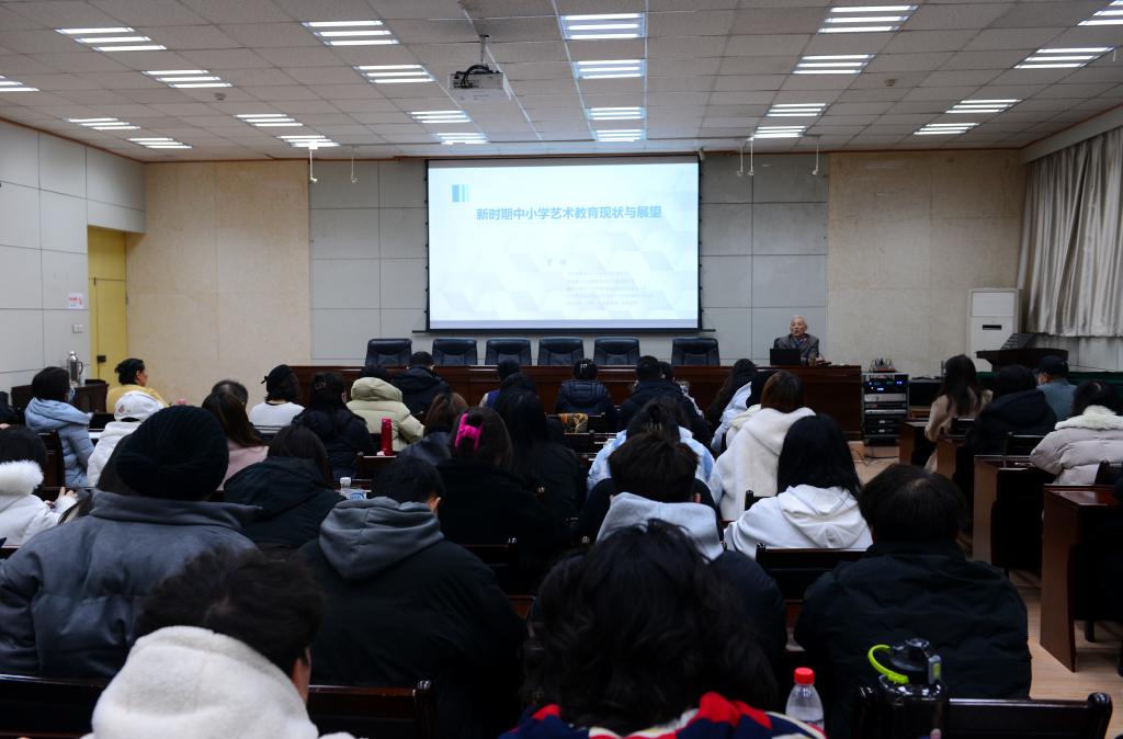 聘任仪式结束后,罗琦在会议中心第三会议室作了题为《新时期中小学音乐教育的现状与展望》的专题报告,音乐系师生代表共计100余人聆听了报告。
