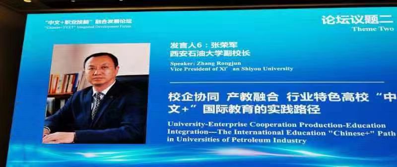 会上,张荣军围绕“中文+职业技能”融合发展,向与会者作《校企协同 产教融合 行业特色高校“中文+”国际教育的实践路径》报告。他指出,当前能源行业对国际化、复合型、专业化技术人才的需求日趋旺盛,在“一带一路”建设、国际能源合作等宏观政策驱动以及能源企业国际化、高校国际化战略需求驱动下,推进“中文+”国际教育成为能源行业特色高校国际中文教育高质量特色化发展的路径选择。