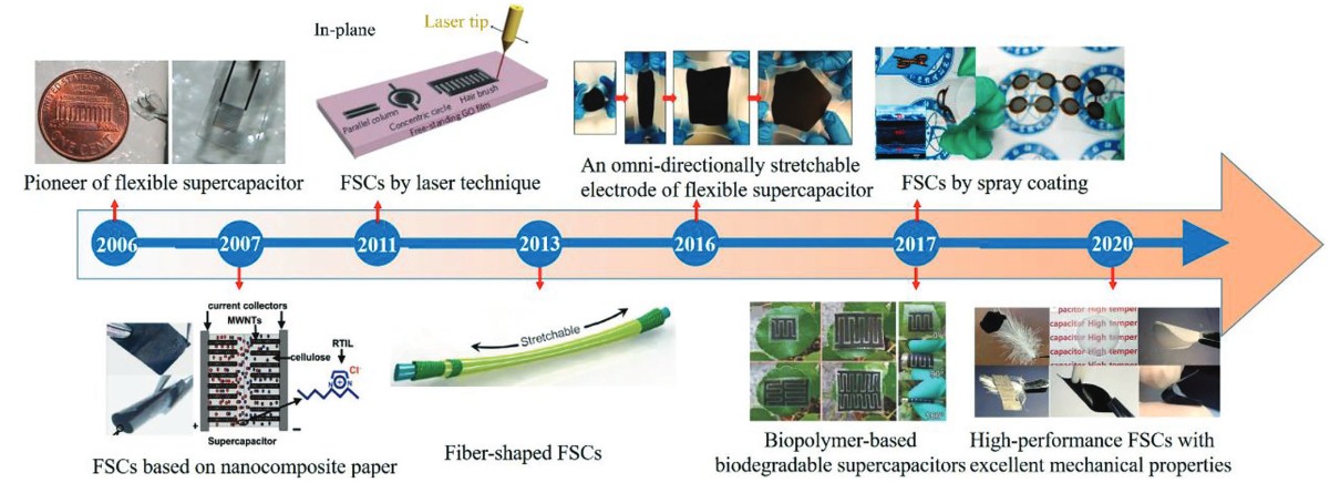 由于可穿戴技术受到了公众的广泛关注,并产生了巨大的经济和社会影响,导致了医疗程序和个人生活方式的改变。而柔性电子技术是可穿戴技术的创新发展方向之一,是因为柔性电子器件具有超薄、机械柔性好、集成度高等优点,在很多领域都有应用前景。因此该文划定了柔性可穿戴超级电容器的实际应用,并且前瞻性的分析了柔性超级电容器可穿戴技术中面临的机遇和挑战。对于柔性可穿戴超级电容器的组装及应用具有重要的借鉴和指导意义。