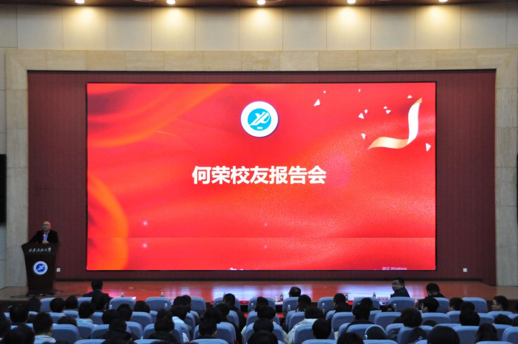 仪式结束后,何荣校友为同学们作了一场精彩的报告。他主要和同学们分享了AI时代如何度过大学时光,提出了自己对未来的技术、教育、知识的思考,他希望学弟学妹们学会使用人工智能助手,提高学习效率,拓宽眼界和知识面。他回忆自己在母校时的美好时光,表示学校的教育教导成就了今天的自己,正是学校的严格要求使自己能够养成良好的习惯,受益终身。他鼓励大家在校期间要多参加各项活动、多学习、多读书,努力提高沟通交流、书面表达、人际交往等能力,紧盯目标奋力前行。报告会的气氛热烈、内容丰富,广大同学们受益匪浅。