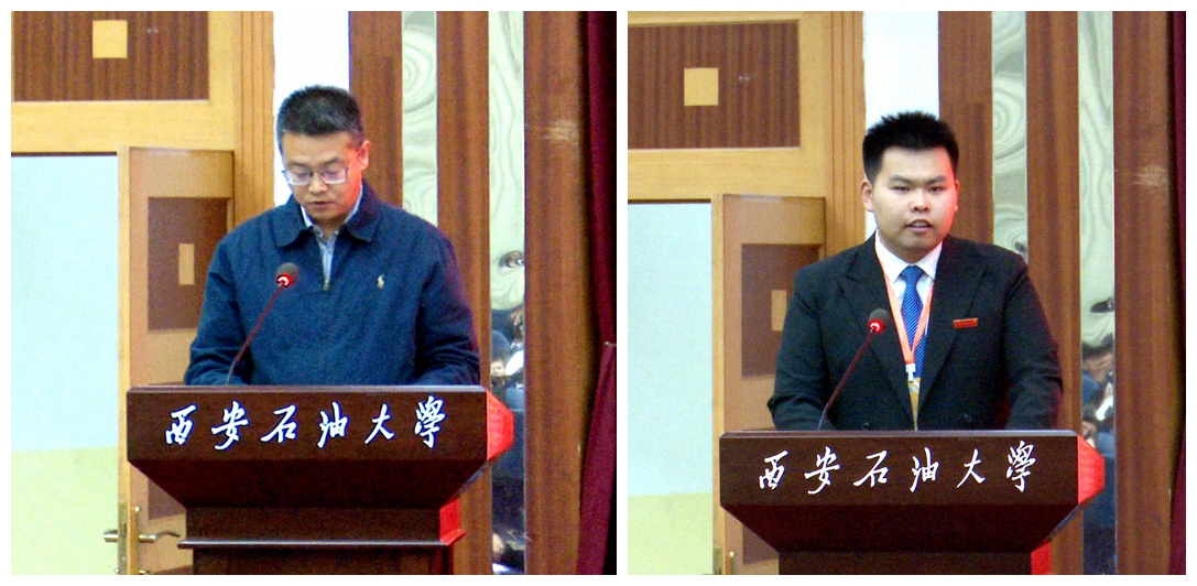 杨俊宣读获奖学生名单及表彰文件;本届获奖学生代表姬祥飞作交流发言