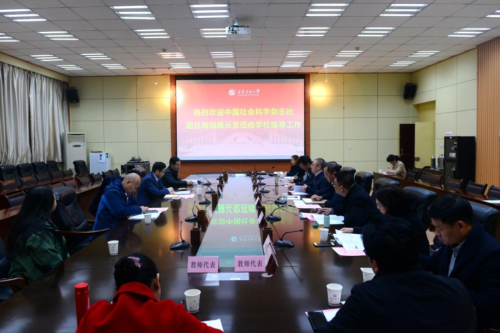 11月15日上午,中国社会科学杂志社副总编辑魏长宝一行来beat365官网调研,会议在雁塔校区会议中心第一会议室举行。校党委书记常江出席座谈会。副校长张荣军主持会议。