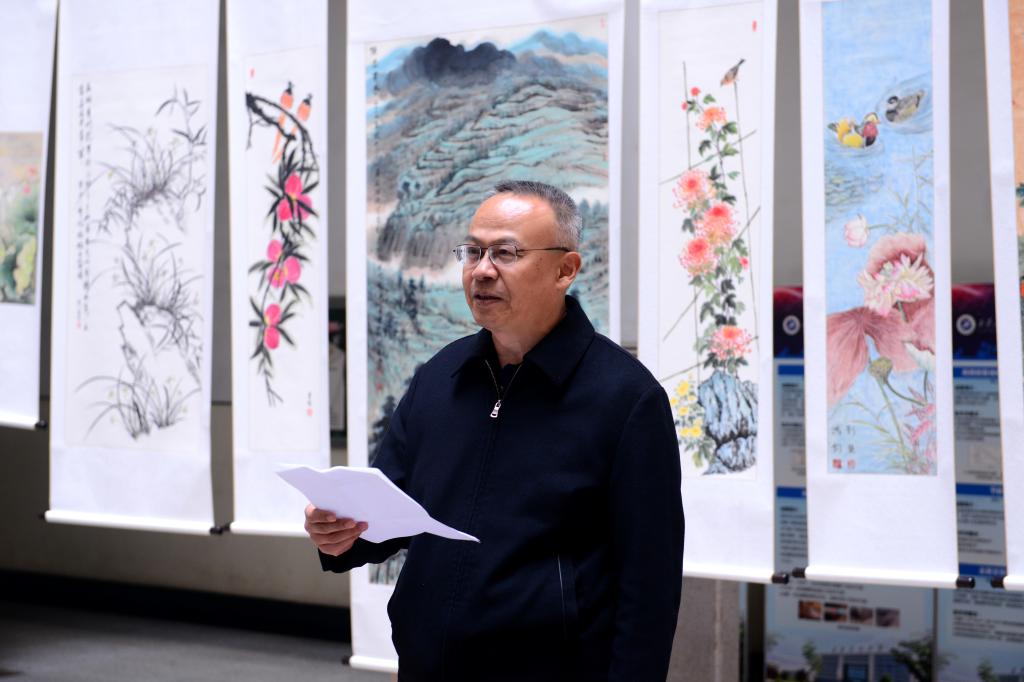 李延平致开幕词,他首先向这次书画展的成功举办表示衷心祝贺,向参加今天开幕仪式的各位书画爱好者、各位来宾表示诚挚的欢迎,向参展嘉宾的辛勤创作表示感谢。他讲到,中华优秀传统文化是中华民族的文化根脉,也是我们书画爱好者创作的源泉。beat365官网书画爱好者秉承这一理念,以传统笔墨描绘自己的生活,以高超技法歌颂我们的校园,展示出了beat365官网书画爱好者的风采,让我们共同感受了中华传统文化的魅力,体会了视觉的冲击,享受了色彩的绚丽。