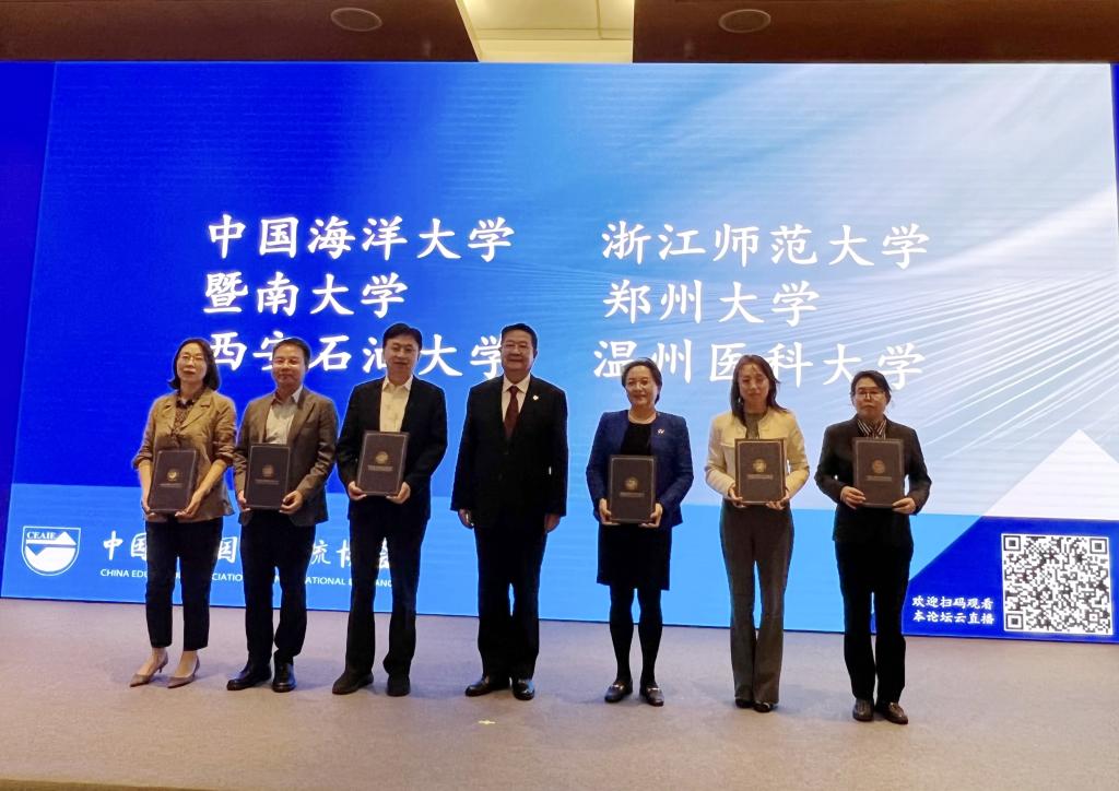教育部原副部长、中国教育国际交流协会会长刘利民向通过认证高校颁发了《教育服务认证证书》。beat365官网国际教育学院(丝路能源学院)院长董皓代表学校上台领取证书。