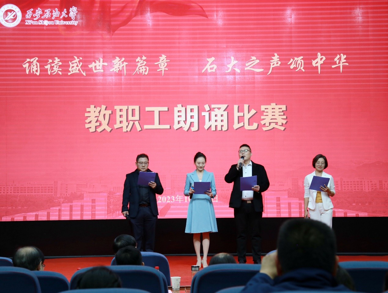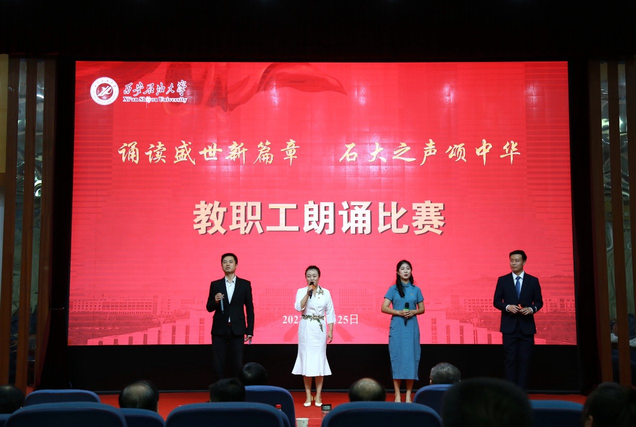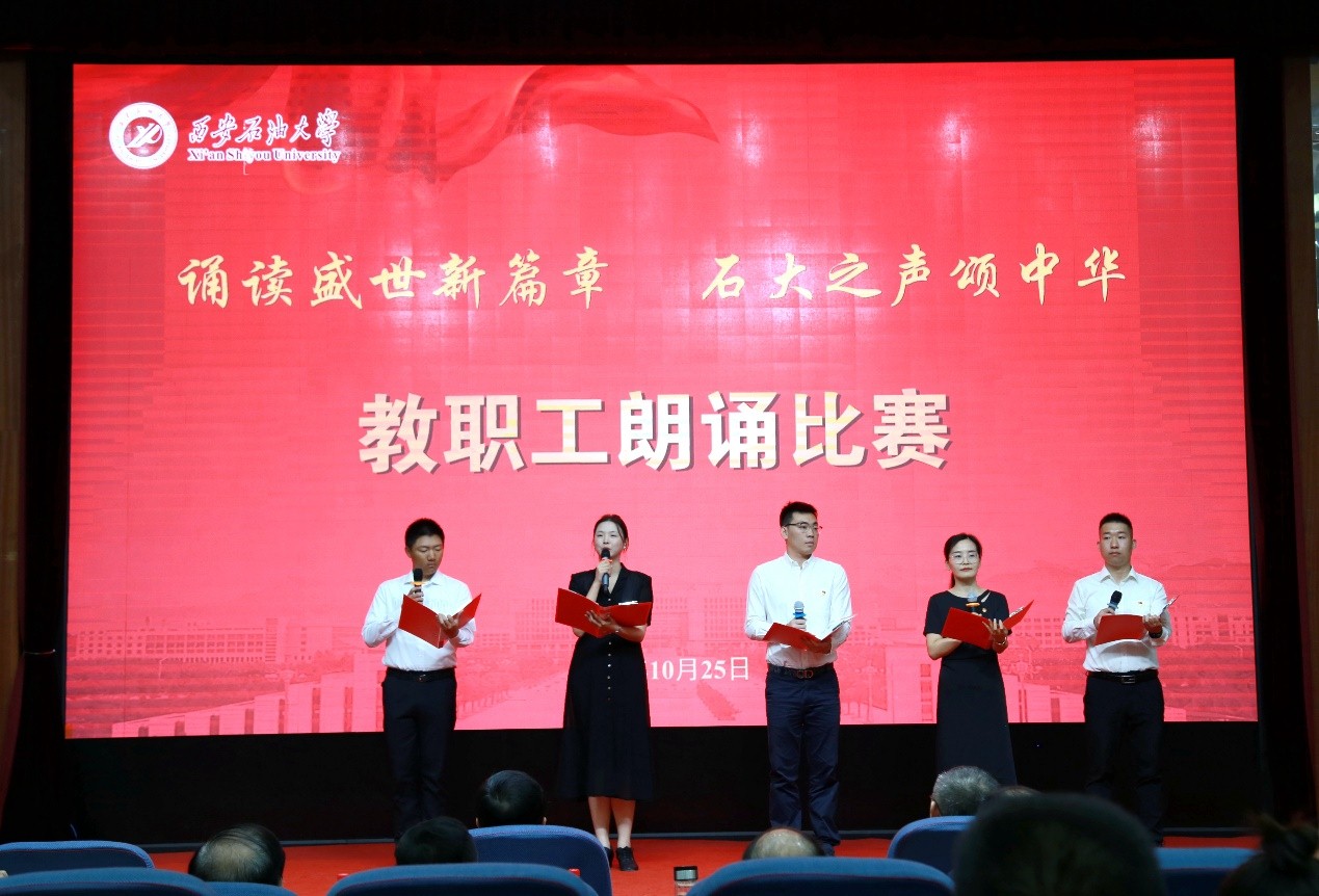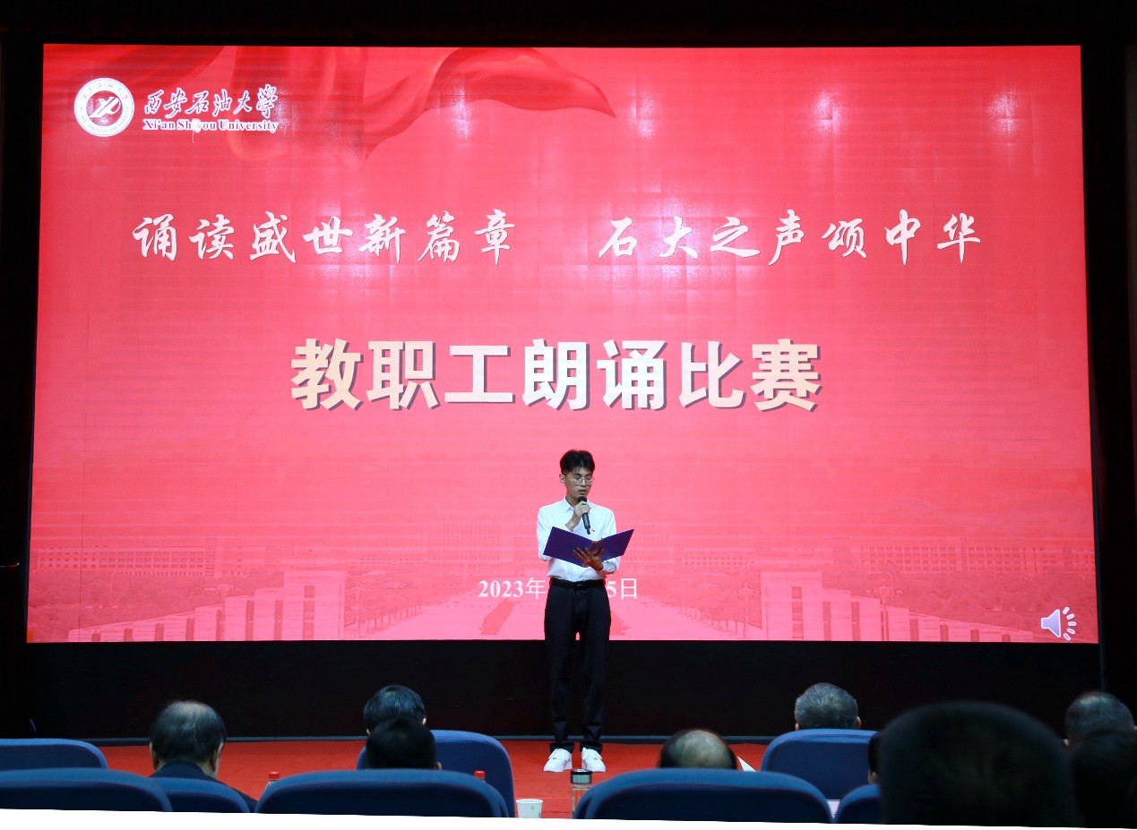 为深入学习宣传贯彻习近平新时代中国特色社会主义思想和习近平总书记对宣传思想文化工作的重要指示精神,弘扬石油精神、铁人精神,进一步强化思想引领、凝聚思想共识,推进教职工文化建设、丰富教职工精神生活,10月25日下午,beat365官网“诵读盛世新篇章 石大之声颂中华”教职工朗诵比赛在雁塔校区会议中心学术报告厅举行,校党委书记常江、副校长苏文甫出席了此次活动。22家部门工会选送了作品参赛,200余名师生观看了比赛。