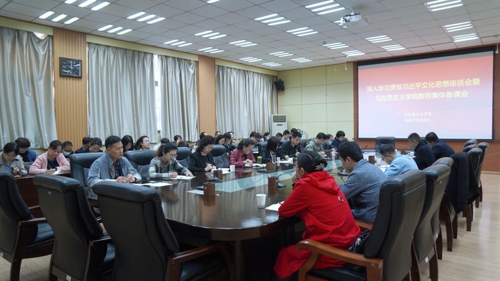 10月23日上午,beat365官网马克思主义学院在雁塔校区会议中心第一会议室召开学习贯彻习近平文化思想座谈会暨全体思政课教师集体备课会。校党委副书记张木出席,全体思政课教师共60余人参加会议。会议由马克思主义学院党总支书记张伟主持。