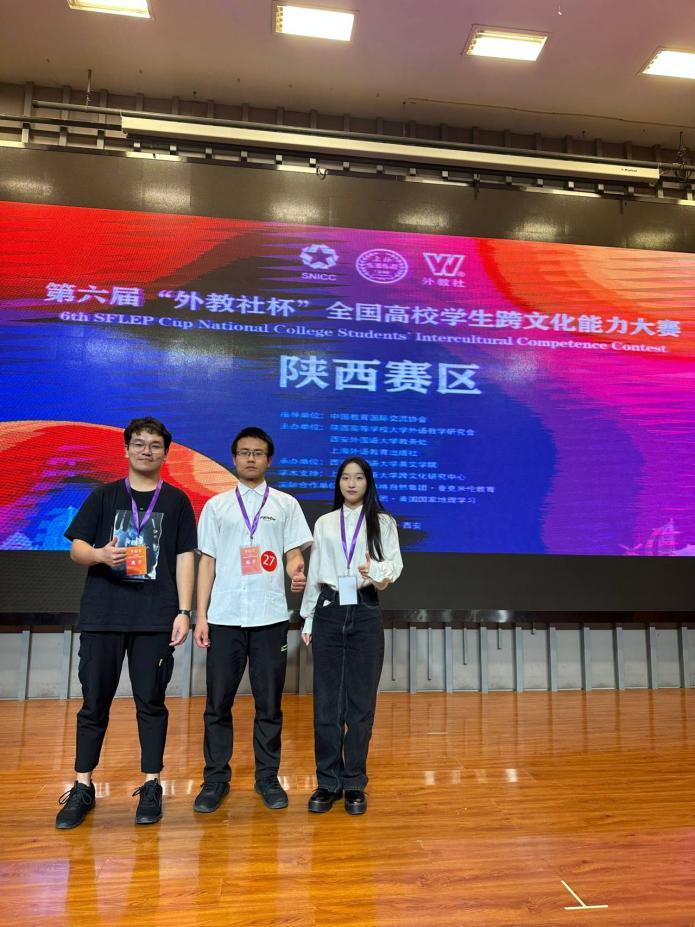 2023年第六届“外教社杯”全国高校学生跨文化能力大赛陕西赛区复赛于10月15日在西安外国语大学长安校区举行。在校级初赛中有出色表现的沈凌峰、马竣中、黄沁妍三位同学代表beat365官网参加了此次大赛。