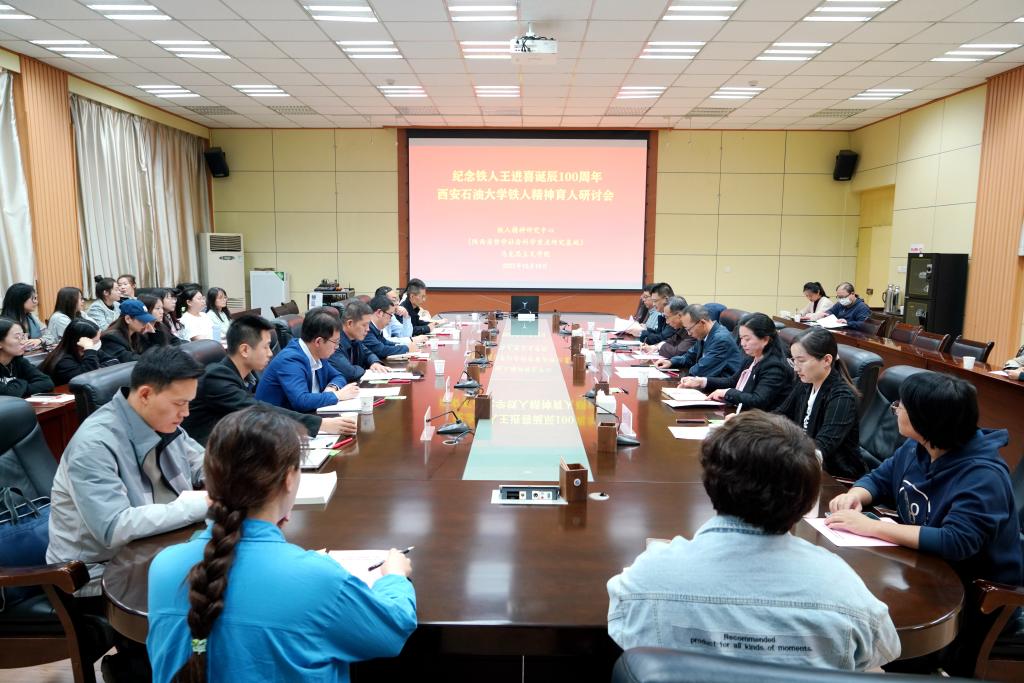 10月10日下午,学校纪念铁人王进喜诞辰100周年铁人精神育人研讨会在雁塔校区西阶会议中心第一会议室举行。校党委副书记张木、副校长张君涛出席研讨会,全国、全省高校黄大年式教师团队代表,省级教学名师代表,省级、校级思政“大练兵”教学标兵代表以及党委教师工作部、教务处、研究生院、马克思主义学院负责人和师生代表50余人参加会议。本次研讨会由陕西省哲学社会科学重点研究基地——校铁人精神研究中心和马克思主义学院主办,会议由马克思主义学院院长张海涛主持。