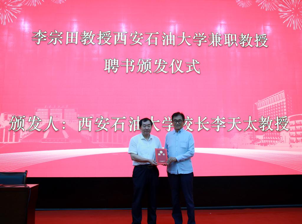 李天太为李宗田颁发了兼职教授聘书,并希望能以此次聘任为契机,加强学科建设和科研合作,提升科研水平,为学校学科发展与人才培养发挥引领作用。