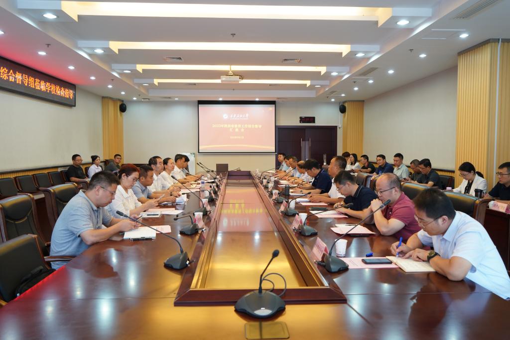 为全面贯彻落实习近平总书记关于教育的重要指示精神和2023年全省教育工作会议精神,深化学习贯彻习近平新时代中国特色社会主义思想主题教育成果,切实抓好党中央、国务院和省委、省政府相关教育政策及决策部署落地,高位推进委厅年度重点工作,9月1日上午,陕西省教育工作综合督导高校第二组组长、省教育厅二级巡视员孙全学一行7人来学校开展2023年教育工作综合督导。副校长苏文甫、程永清出席汇报会并陪同督导检查。