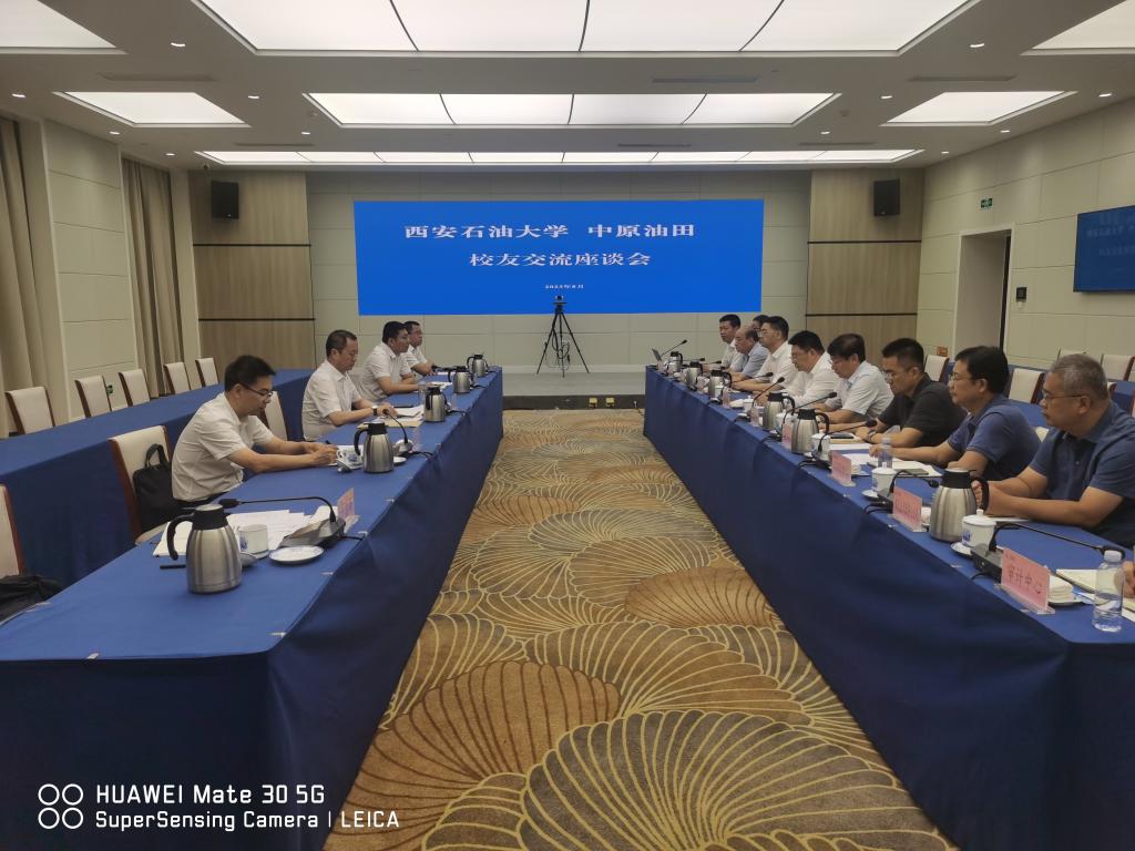 走访期间,张荣军一行分别与南阳二机石油装备集团股份有限公司董事长、党委书记杨汉立,董事张勇,总经理苏攀甫,副总经理张益民,人力资源与战略发展部部长郭姝驿;中国石化河南油田分公司副总经理王良军,党委组织部(人力资源部)人力资源管理高级专家魏建新;中国石化中原油田分公司副总经理李中超,副总政工师、党委组织部(人力资源部)经理陈东升;中国石化中原石油化工有限责任公司党委副书记、纪委书记、工会主席、监事会主席王攀,董事会秘书、综合管理部(党委办公室)主任郭永立,党委组织部(人力资源部)经理郭伟;中国石油天然气第一建设有限公司总经理、党委副书记曹阳,党委副书记、纪委书记、工会主席齐德辉,副总经理刘伟,总经理助理、人力资源部(党委组织部)经理刘明国,总经理助理、工程管理中心主任杨兴武,副总工程师薛防震等领导及相关部门负责人进行了校企合作座谈交流。