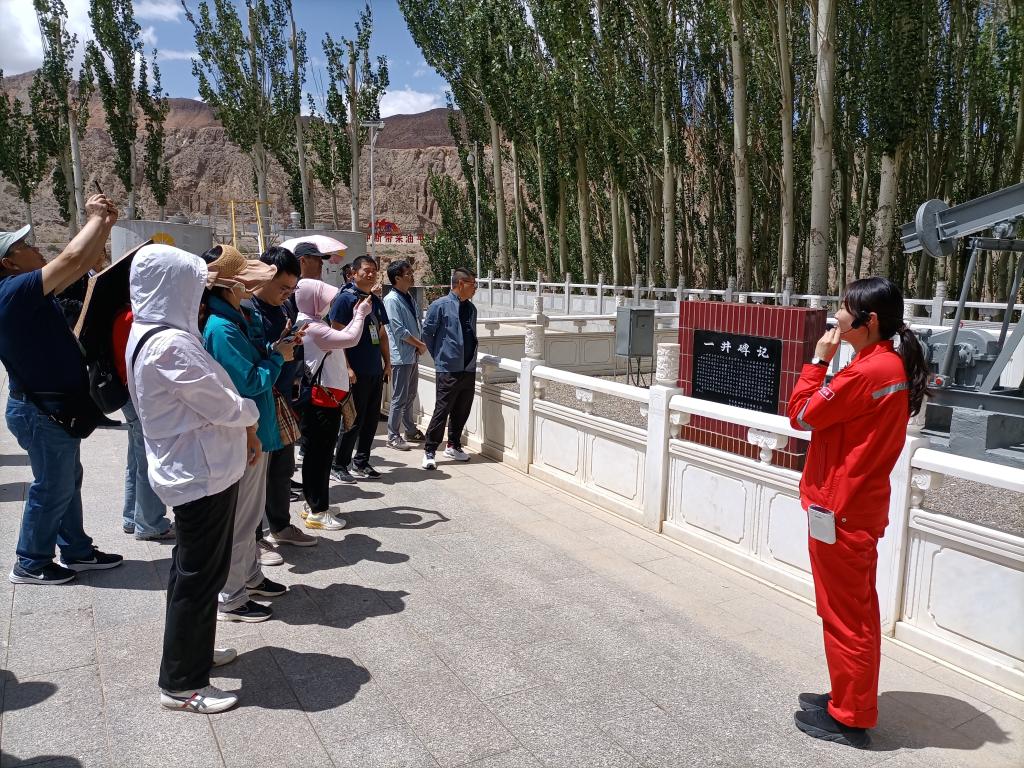 7月13日,研修学员参观了铁人王进喜纪念馆、“693”人防工程以及老君庙采油厂。在铁人王进喜纪念馆中,学员们向铁人王进喜雕像敬献花篮,重温入党誓词。随后,讲解员结合历史照片和珍贵文物,从苦难经历、创业玉门、会战大庆、心系家乡、精神永存五部分为大家讲述了铁人王进喜“爱国、创业、求实、奉献”的光辉一生。通过参观王进喜纪念馆,研修学员对铁人精神有了更深入的认识和了解,思想上得到了升华、精神上受到了洗礼。在参观693人防工程过程中,研修学员折服于玉门人民为保障国家石油资源安全、历经艰辛修建而成的早期人防工程付出的艰辛,进一步加强了学员爱国主义教育和党性教育。在老君庙采油厂,学员们参观了老君庙一号井旧址、老君庙展览室、西河坝窑洞旧址和企业精神教育基地603岗位,在讲解员的带领下,系统回顾了老君庙油矿的发展历程,深刻感受了石油精神的价值内涵。
