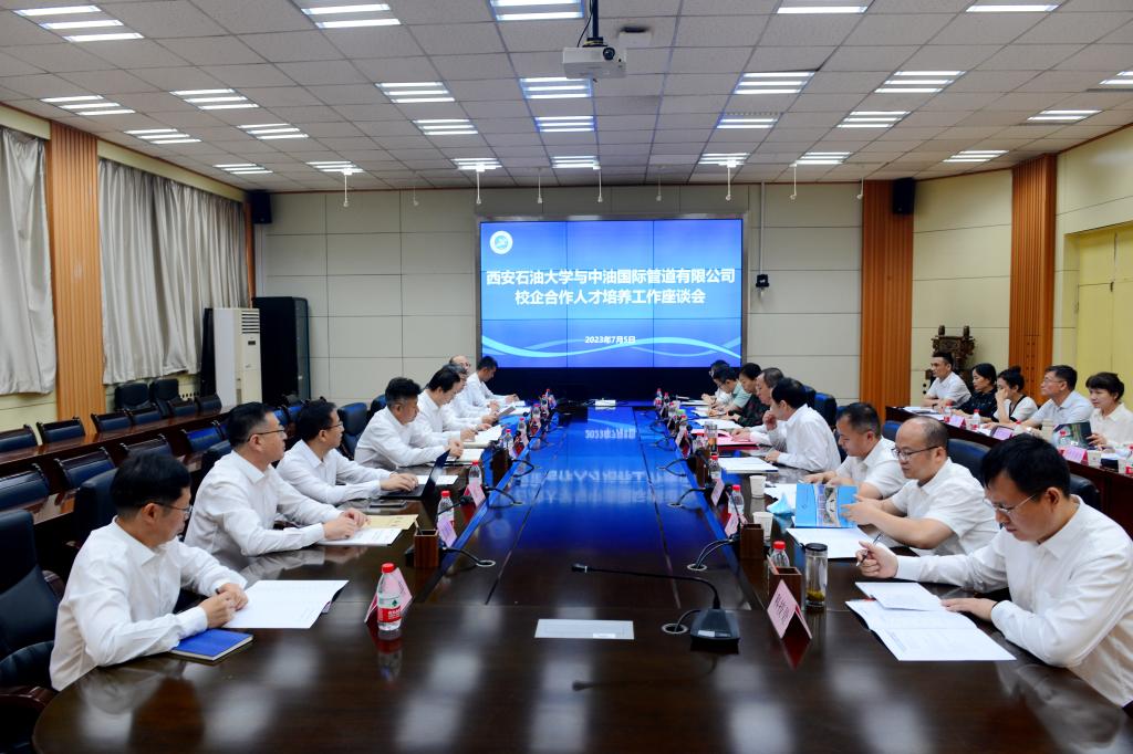 beat365正版唯一官网与中油国际管道公司校企合作人才培养工作座谈会在beat365官网雁塔校区会议中心第二会议室举行。校党委书记赛云秀会前会见了中油国际管道公司执行董事孟向东一行。校长李天太出席座谈会,副校长张荣军主持座谈会。