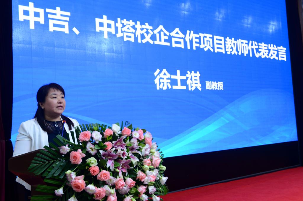 李天太在致辞中向校企合作项目来华留学毕业生致以热烈的祝贺和衷心的祝福,并提出了三点希望:一是勿忘所学、继续精进学业;二是勿忘友谊、成为交流使者;三是勿忘母校、感念师恩。