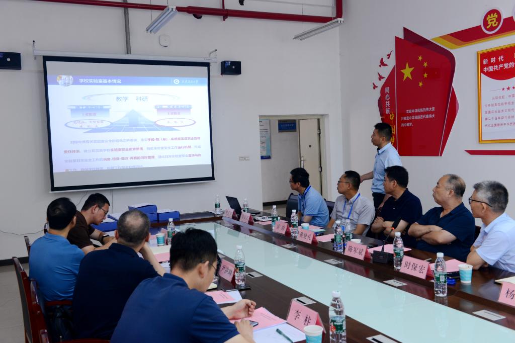 实验室管理处副处长李庆本从beat365官网及实验室工作基本情况、实验室安全工作主要举措、实验室安全工作存在的主要问题以及下一步的重点工作三个方面向检查组作了详细汇报。