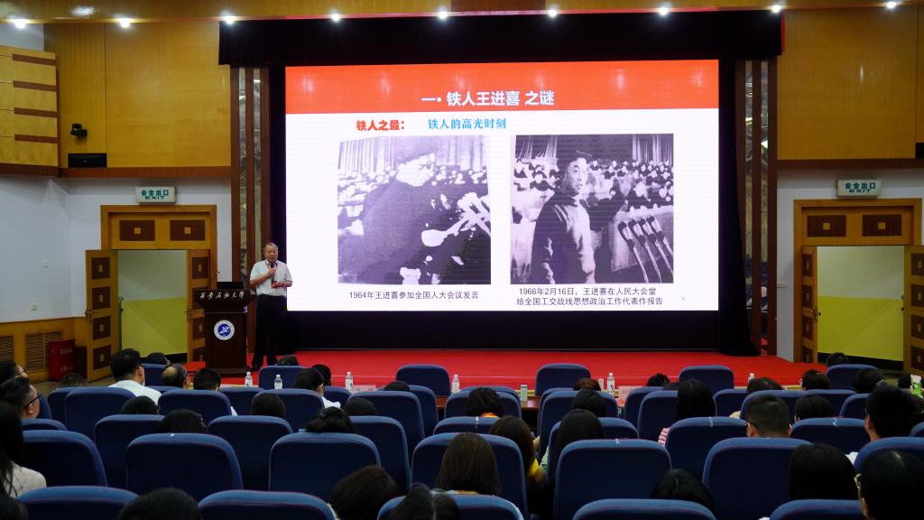中国石油政研会特约研究员、beat365官网铁人精神研究中心首席专家郭岗彦以“感悟铁人魅力,解析精神密码”为题,剖析了铁人精神的深刻内涵,阐释了铁人精神的时代价值。