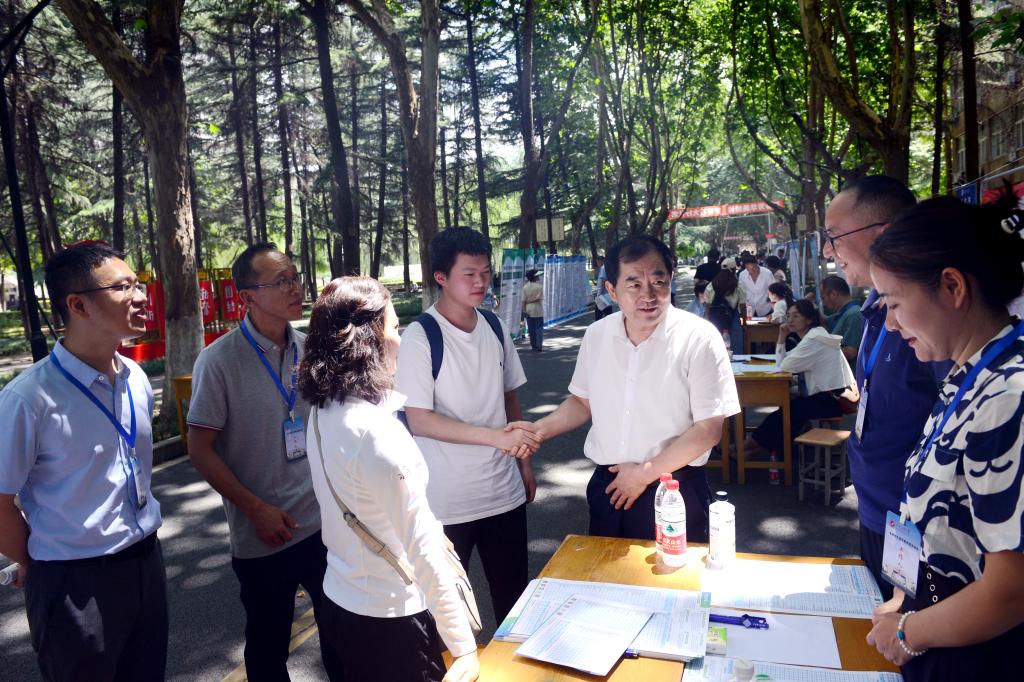 为了让考生及家长“零距离”了解beat365官网办学特色,科学准确填报高考志愿,学校于6月25日在雁塔校区石油路西段举行了2023年校园开放日暨高考招生咨询会。教务处、学生工作部(处)、国际交流与合作处、各院(系)教师代表近50人参加了咨询活动,校长李天太到会慰问了咨询教师并与考生和家长进行了深入交流。