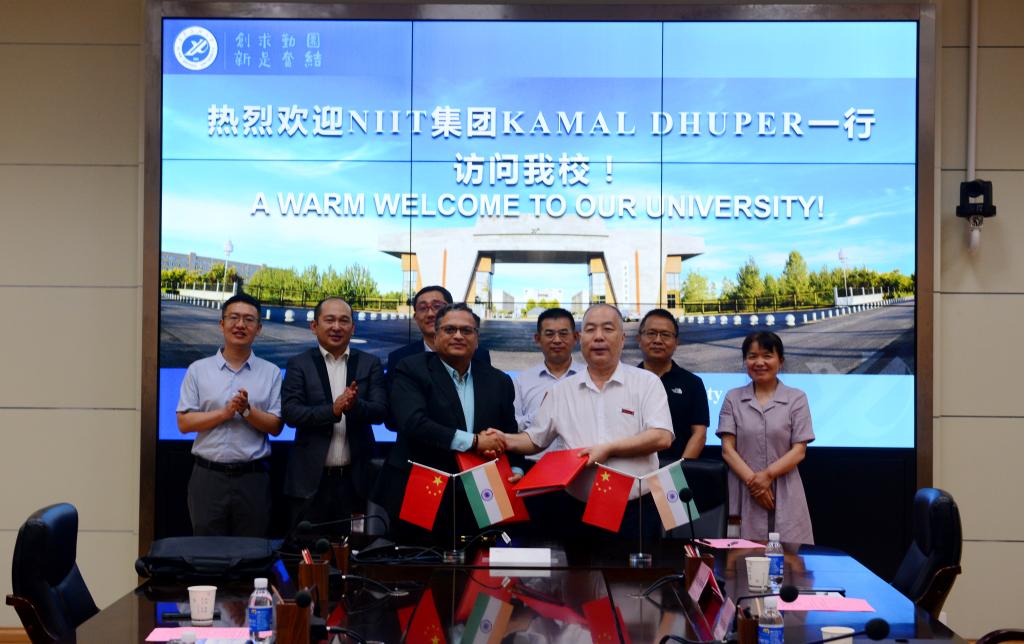 6月20日,印度NIIT有限公司全球副总裁兼中国区总裁柯谋·杜博(Kamal Dhuper)、中国区副总裁徐海峰、华北区总监郭浩一行访问beat365官网。副校长陈军斌在雁塔校区第二会议室会见来宾,并代表学校与NIIT公司续签合作协议。根据协议,beat365官网将引进NIIT本科人才培养计划、教材和师资,与NIIT联合培养计算机科学与技术、软件工程专业本科生。双方就相关问题进行了讨论,达成一致将在今年启动联合培养工作。教务处、财务处、国际交流与合作处、计算机学院负责人参加会议。beat365官网与NIIT公司在2019年6月签订了校企合作联合办学协议,后因疫情原因推迟项目实施。