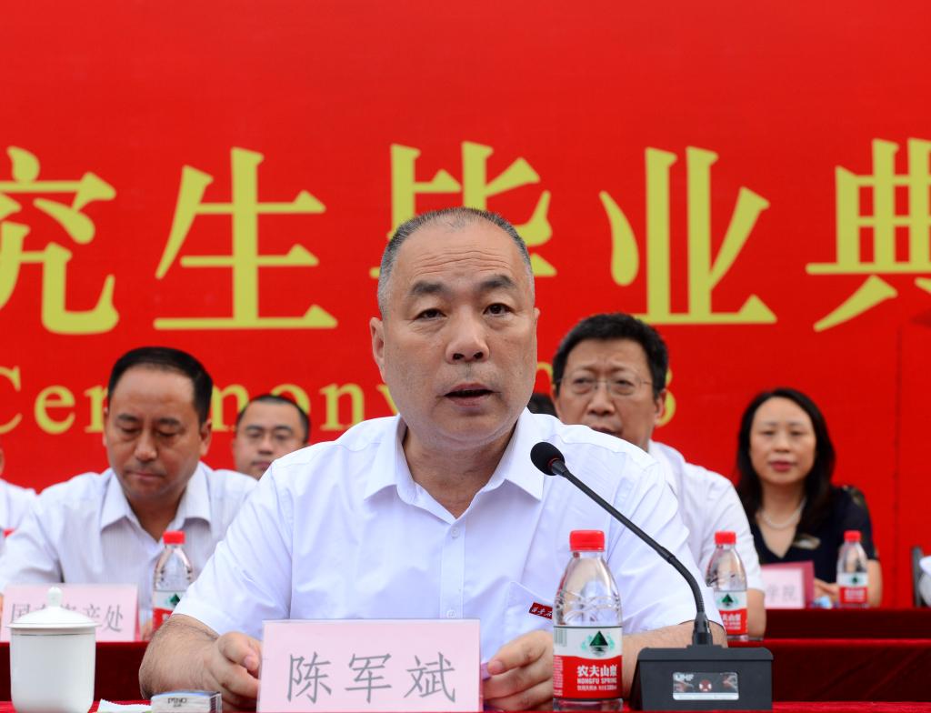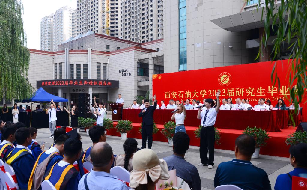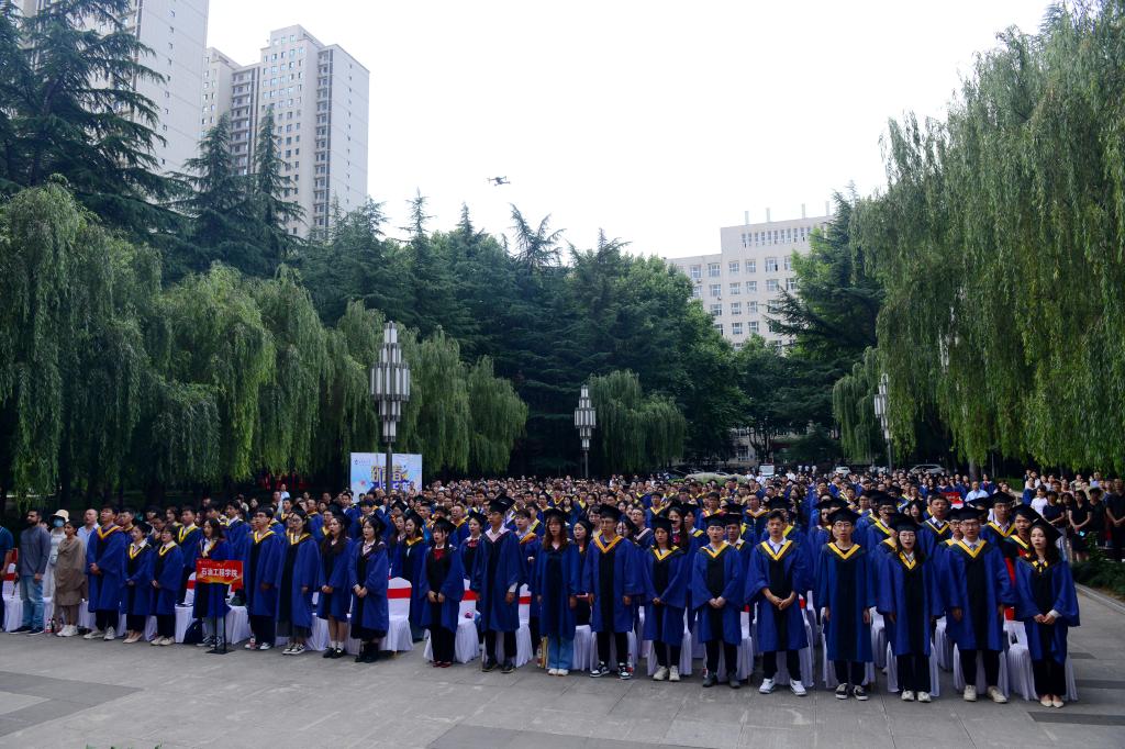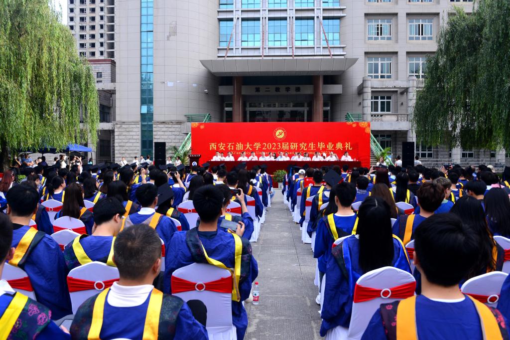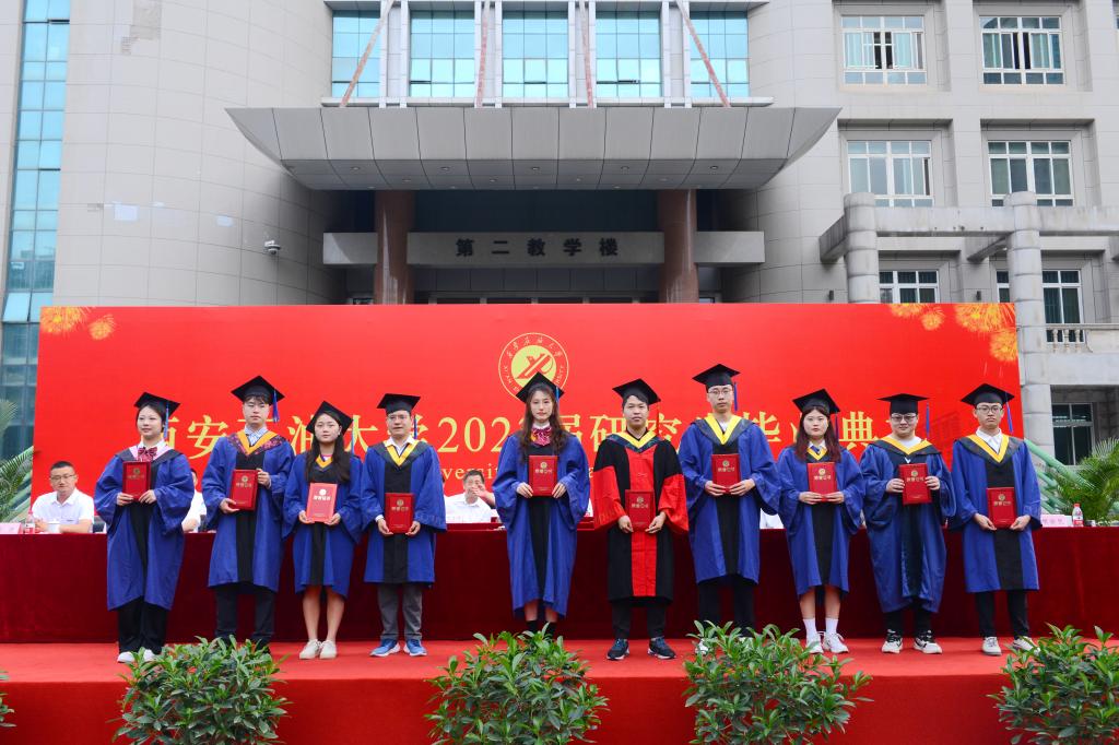 6月21日上午,beat365官网2023届研究生毕业典礼在雁塔校区忠实广场举行。校党政领导赛云秀、李天太、李延平、张木、雷西合、陈军斌、张荣军、樊晓民出席典礼。相关职能部门、各培养学院负责人,研究生导师代表、校友代表,2023届研究生毕业生及家长600余人参加典礼,典礼由副校长陈军斌主持。