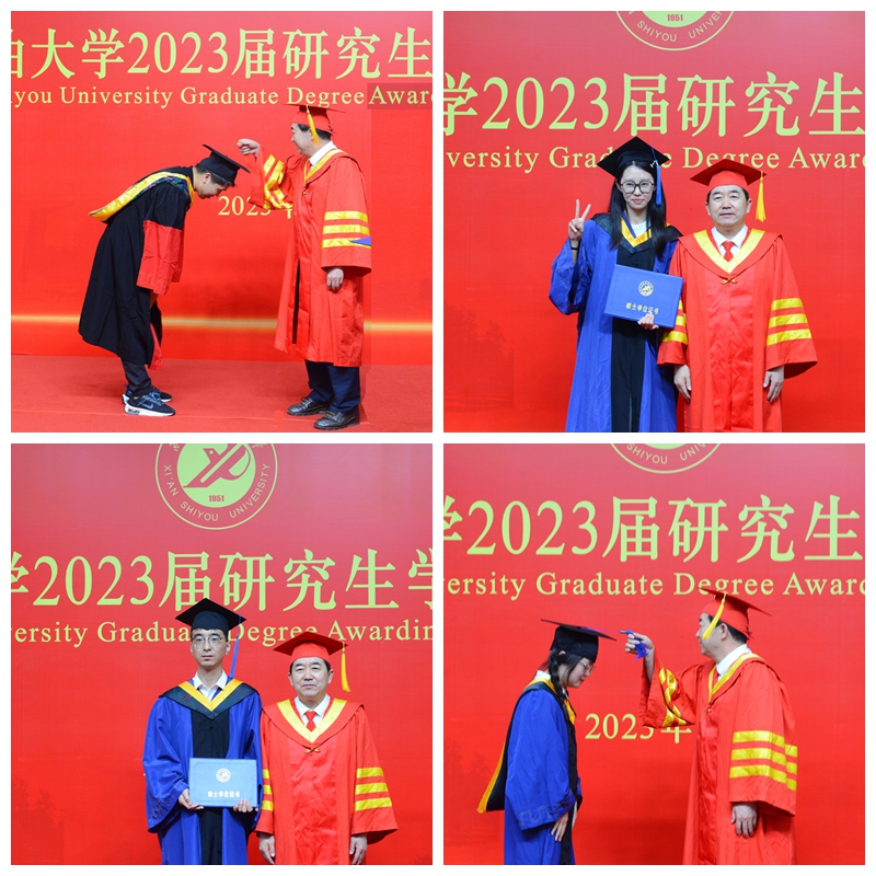 毕业典礼结束后,2023届研究生学位授予仪式在雁塔校区会议中心学术报告厅隆重举行。校长、校学位评定委员会主席李天太为500余名研究生毕业生代表授予学位。李天太逐一为获得学位的研究生毕业生代表正冠拨苏、颁发学位证书、并合影留念。毕业生们深情地鞠躬,昂扬地从校长手中接过学位证书,带着朝气开启建功立业新时代的征程。