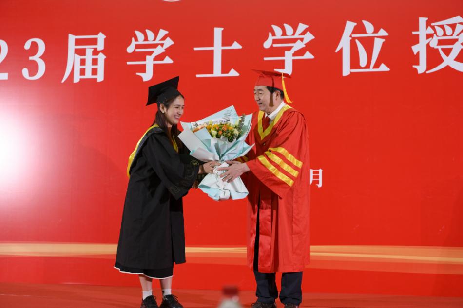在授位仪式上,陈军斌宣读了《beat365正版唯一官网关于授予蒋诗谱等4215名学生学士学位的决议》,授予3988名2023届普通高等教育本科毕业生学士学位,授予42名2023届国际学生学士学位,授予171名2022届、2023届成人高等教育本科毕业生学士学位,授予14名2022届结业生学士学位。