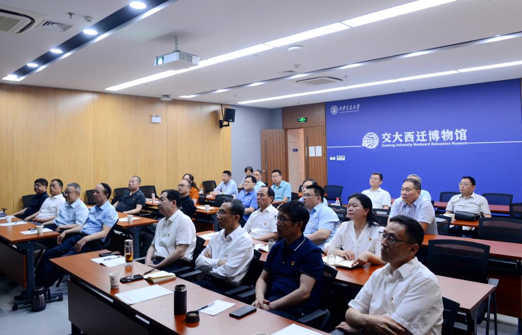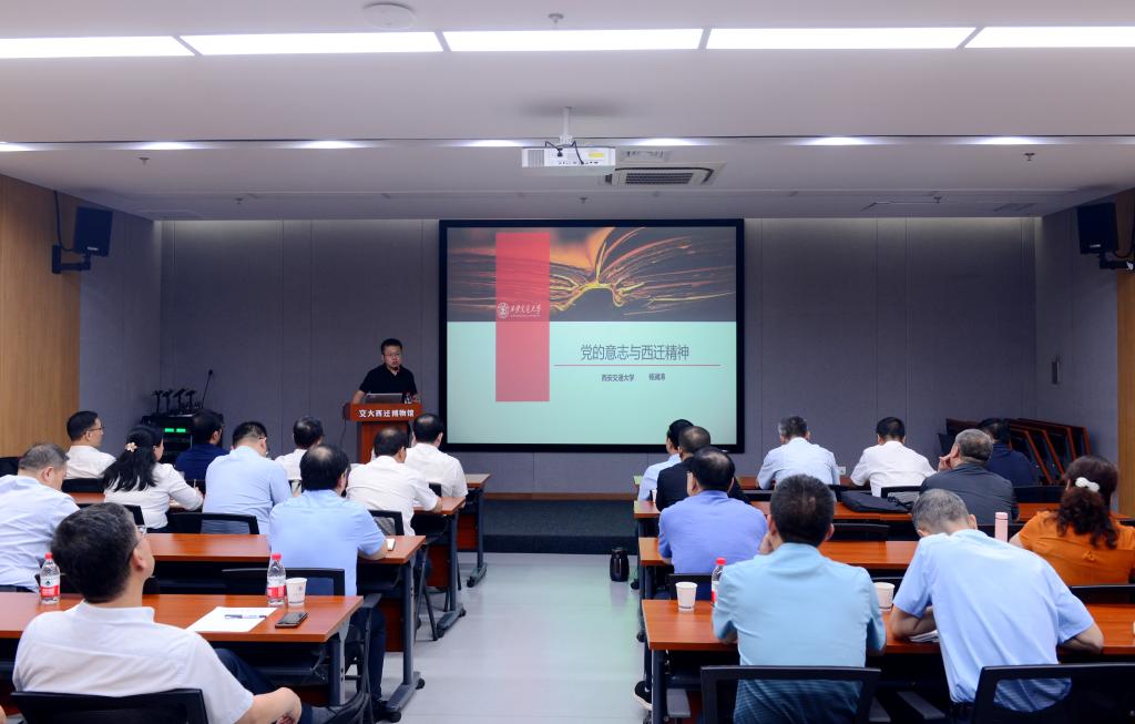 在实践研学现场教学环节,校党委理论学习中心组(扩大)在交大西迁博物馆报告厅听取了专题党课。西安交通大学校史与大学文化研究中心副研究馆员、西迁精神宣讲团专家组成员杨澜涛博士以《党的意志与西迁精神》为题,对党中央决策西迁的历程及影响进行了详细讲解。在交大西迁博物馆,研学人员通过实地参观和聆听讲解员介绍,回顾了交通大学的西迁征程,领略了交大兴学强国、崇德尚实的学风与“起点高、要求严、基础厚、重实践”的优良办学传统,学习了“西迁人”感人至深的先进事迹,体会了以“胸怀大局、无私奉献、弘扬传统、艰苦创业”为核心内涵的西迁精神。