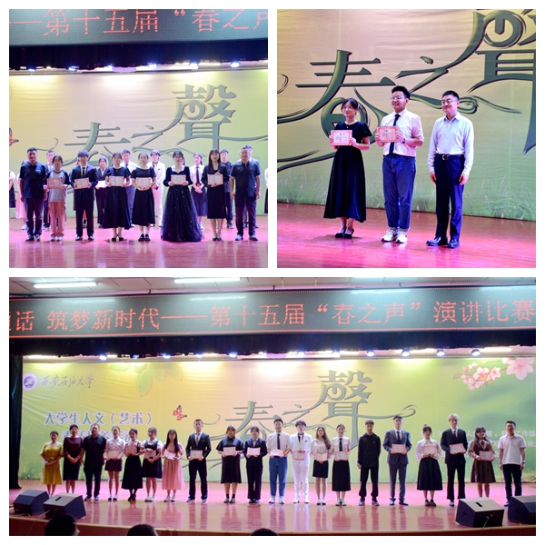 经过激烈角逐,经济管理学院索朗多杰同学的《党的光辉照边疆,边疆人民心向党》,材料科学与工程学院罗静怡同学的《不忘初心,毅开新局》获得了一等奖;经济管理学院高紫纯同学的《用中国式的表达展现国潮中的烟火中国味》,电子工程学院赵雅琪同学的《科技强国,看吾辈青年》等7个节目获得了二等奖;人文学院许小月同学的《今天,普通话有了新名片》,机械工程学院赵胜杰同学的《中国智造,青年当有为》,新能源学院何晓雨同学的《勇担历史使命 能源强国有我》,人文学院卢筱雅同学的《乡村振兴,有你有我》等18个节目获得了三等奖。