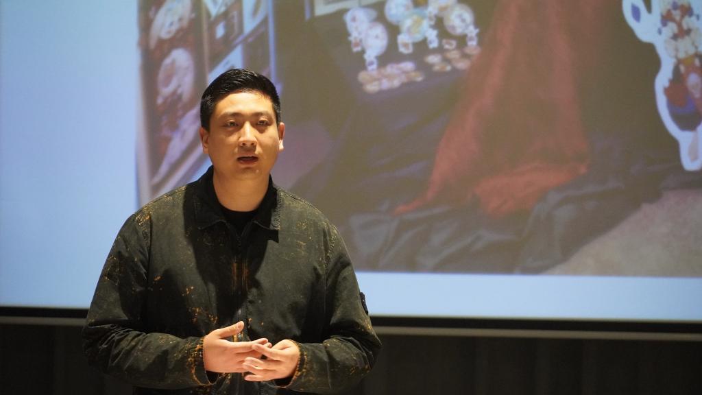 人文学院2023届艺术硕士研究生毕中泽作为学生代表发言。他首先代表17位即将毕业的研究生感谢学校领导和相关职能部门提供的展示平台,本次展览是同学们在深入学习中国传统文化、关注现实生活、探寻艺术规律的基础上,将艺术与技术融合思考转化为设计实践的一次综合尝试,反映出同学们时刻关注社会、服务社会的创作初心。