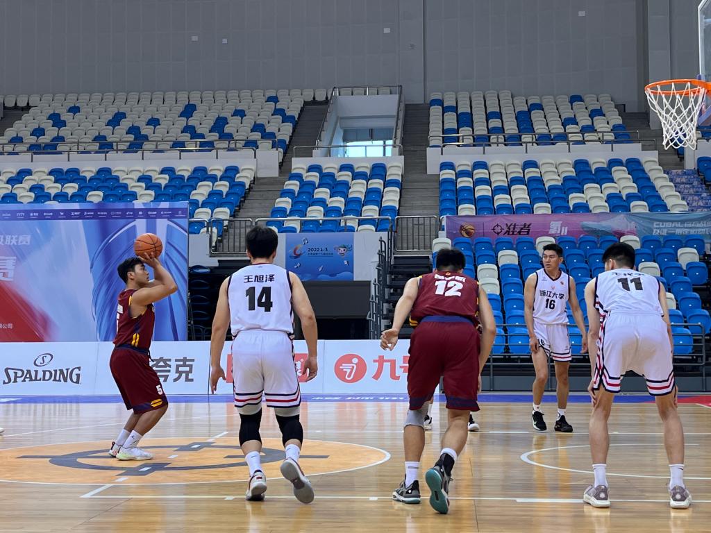 在全国赛小组赛中,首场面对南区球队安徽理工大学。首次面对南方球队小、快、灵的打法,我方队员强硬防守、耐心进攻,由于地理位置原因,首发队员们很快出现了体力不支等情况,主教练迅速调整阵容,给予休息,队员们咬牙坚持拼搏,始终保持着领先的优势,最终以98:78的比分战胜安徽理工大学,首战告捷。5月20日beat365官网迎来第二场小组赛,对阵曾两次获得全国总冠军的中国刑事警察学院。开局面对对方全场紧逼,五上五下的战术,beat365官网队员咬紧牙关、稳扎稳打,上半场结束时双方比分胶着,下半场beat365官网队员手感火热,率先进入节奏,打出一波小高潮,最终以71:48大比分战胜中国刑事警察学院。5月21日beat365官网迎来小组赛第三场比赛,对战南区冠军浙江大学。上半场比赛双方难舍难分,以平局结束。下半场,beat365官网队员状态回暖,连续三分出手,多次打成二加一,逐渐拉开分差,最终以79:64战胜南区冠军浙江大学。beat365官网以小组赛全胜的优异战绩出线,晋级到后续的淘汰赛中。