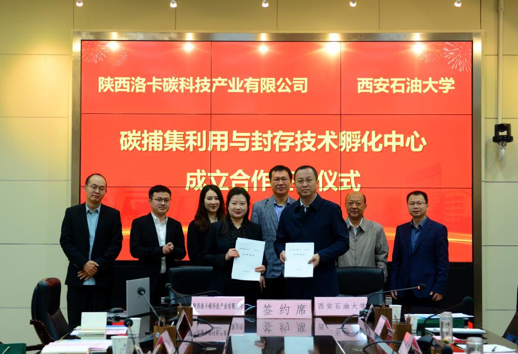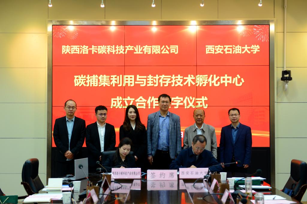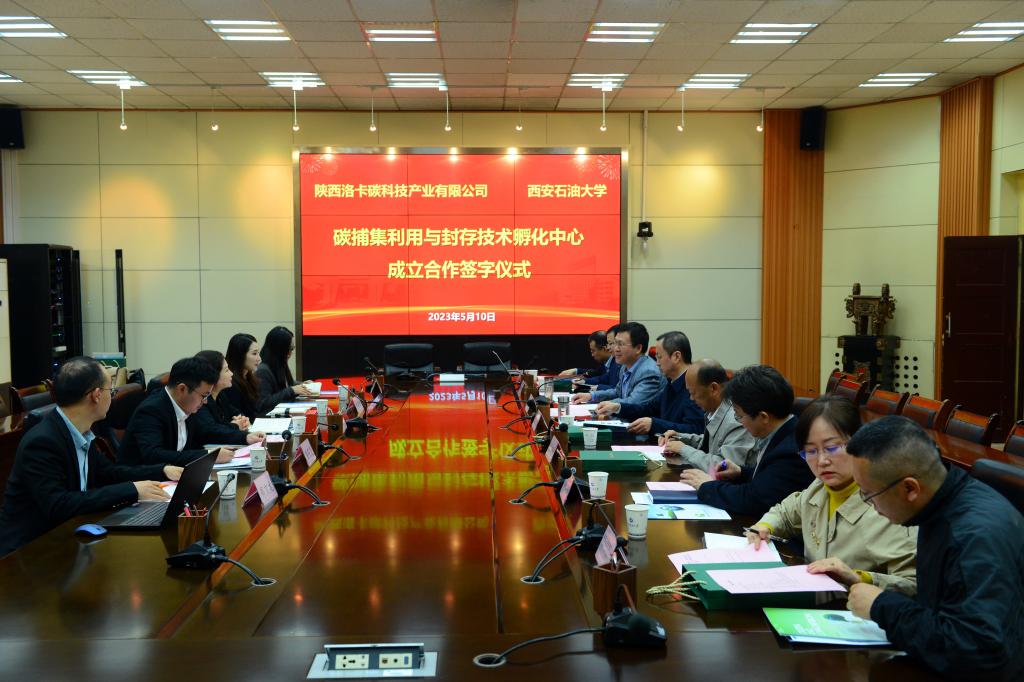 5月10日上午,beat365官网与陕西洛卡碳科技产业有限公司在雁塔校区会议中心第二会议室举行“碳捕集利用与封存技术(CCUS)孵化中心”合作协议签约仪式。陕西洛卡碳科技产业有限公司董事长侯静云、总经理蔡闽琦、副总经理姜安定,beat365官网副校长张荣军出席会议。会议由科技处处长张益主持。
