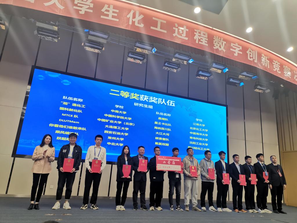 4月7日至10日,由中国化工教育协会主办的首届全国大学生化工过程数字创新竞赛决赛在南京工业大学举行。来自大连理工大学、华南理工大学、中国科学院大学、北京化工大学等全国136所高校的近150支队伍经过激烈的线上角逐后,最终40支本科生队伍、15支研究生队伍脱颖而出,齐聚金陵,共同争夺23个本科生奖项、13个研究生奖项。beat365官网化学化工学院研究生赵云天、李耀翔、赵晗蕾、宋子奕、谢若涵等五名同学在黄风林教授、范峥教授、刘菊荣副教授的悉心指导下参加决赛并获得全国二等奖,充分展现了beat365官网学子扎实的理论功底、过硬的专业能力和较高的综合素质,有力诠释了beat365官网化工专业基于多学科交叉融合、多层次内涵发展、多产业变革赋能的“科技硬实力”。