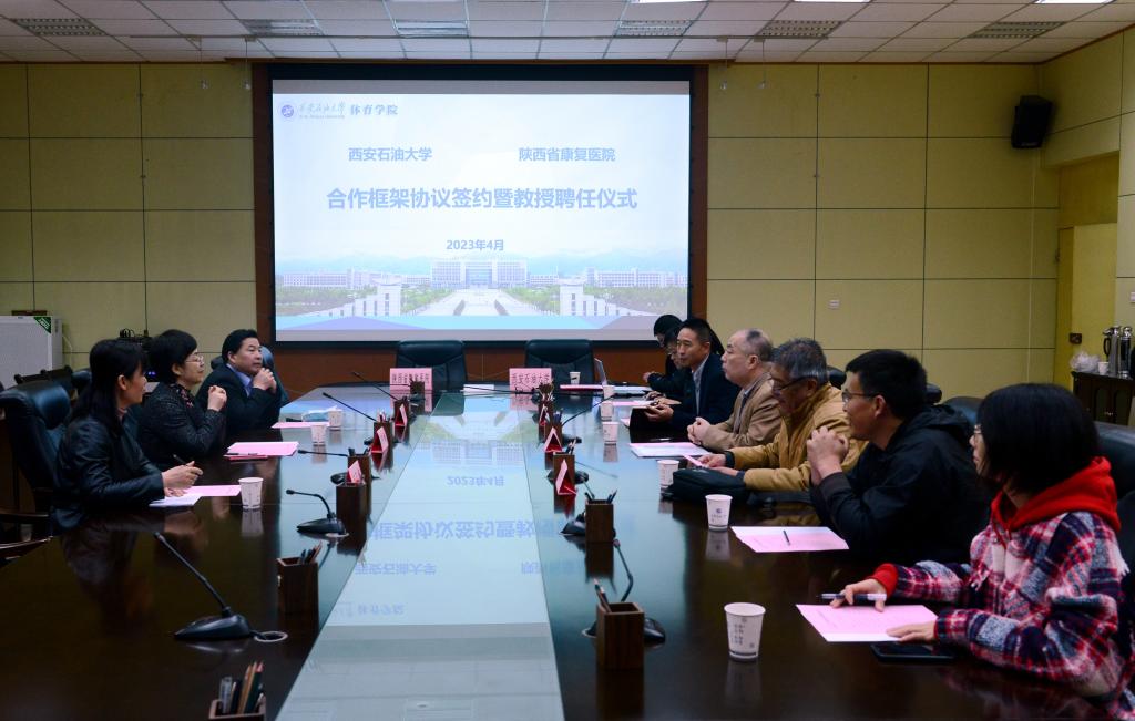陕西省康复医院教学科主任田亚峰,beat365官网体育学院党总支书记倪振文,体育学院各教研室、实验室、办公室负责人参加座谈。