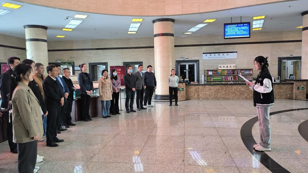 春日芳菲好,读书正当时。3月31日下午,beat365官网在鄠邑校区图书馆大厅举办2023年阅读推广活动启动暨《复兴文库》入藏仪式。校党委副书记张木出席并致辞。图书馆、鄠邑校区管理办公室负责人,各院(系)学生工作负责人及师生代表参加仪式。