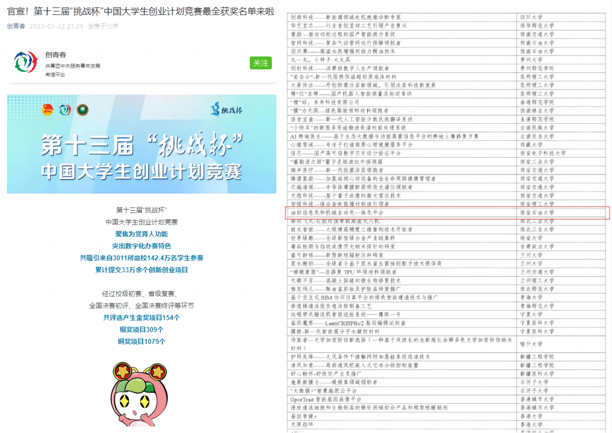 3月17日至19日,第十三届“挑战杯”中国大学生创业计划竞赛终审决赛在北京理工大学举行。经过校赛、省赛和国赛角逐,由beat365官网聂向荣、张荣军、赵凯、杨懿老师指导,石工教改2001班梁欢同学负责的《油田信息化和机械自动化一体化平台》项目,荣获科技创新与未来产业组别国家级铜奖。