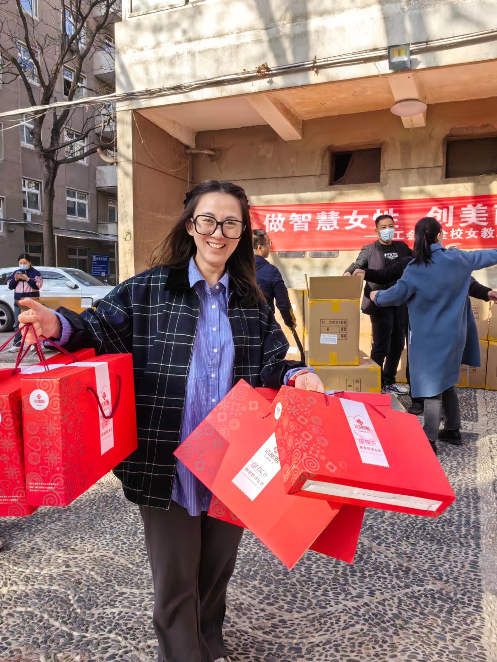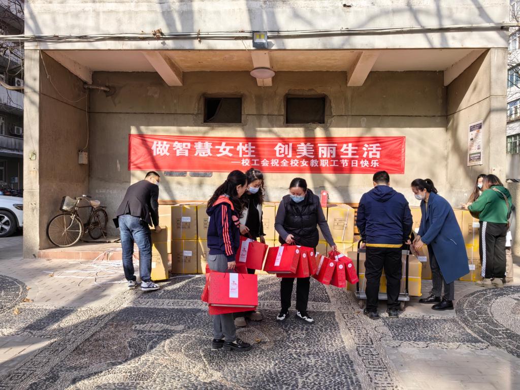 校工会向全体女教职工发放节日慰问品,于3月8日上午进行了发放,为大家送上节日的慰问与祝福,祝全校女同胞做智慧女性,创美丽生活。