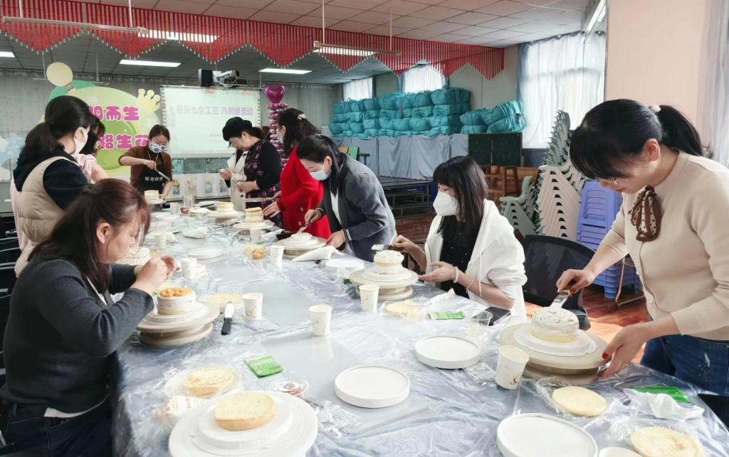 为丰富女教职工的节日生活,提升女教职工的幸福感,活跃身心、增进感情,营造温馨的文化氛围,3月7日上午,机关七工会组织女职工DIY蛋糕活动,自己动手制作蛋糕,以“烘焙”活动的方式庆祝“三八”国际劳动妇女节。同时为女工们准备了美丽的花束,为大家送上节日的祝福。