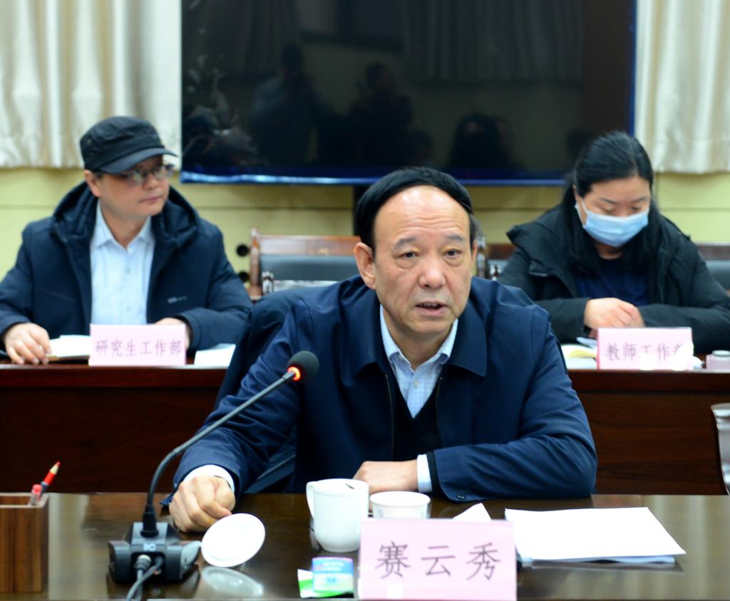 开班式结束后,校党委书记赛云秀对全体参训学员提出了三点要求。一是要提高政治站位,深入学习贯彻党的二十大精神,坚持原原本本学、融会贯通悟、联系实际思,深刻领悟“两个确立”的决定性意义,增强“四个意识”、坚定“四个自信”、做到“两个维护”。二是要遵守培训纪律,发挥示范作用,要从讲政治的高度、从推动学校高质量发展的大局来认识这次培训,妥善处理工学矛盾,起到带头示范作用。三是要深学细思践悟,做到学以致用,不断提升解决问题、应对风险挑战的能力,切实把学习成效转化为推动事业发展的强大动力,持续推进学校各项重点工作落地落实,奋力推进学校高质量发展。