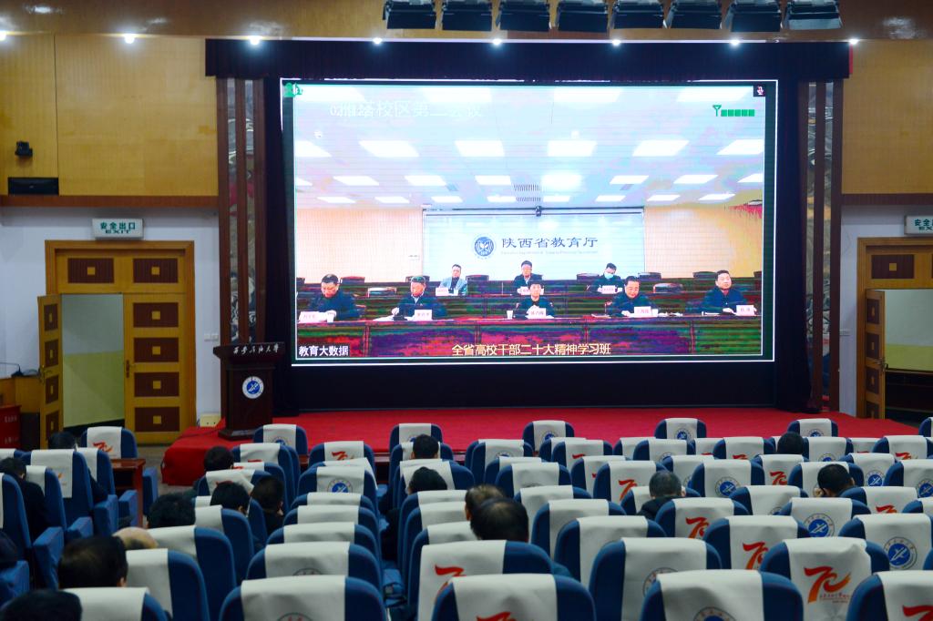 2月20日至24日,beat365官网在雁塔校区和鄠邑校区同时设置分会场,同步组织参加由省委教育工委主办的全省高校领导干部学习贯彻党的二十大精神专题学习班,学校全体校领导、处级干部参加培训。省委教育工委书记、省教育厅厅长刘建林作开班动员讲话,省委教育工委副书记陈乃霞主持开班式并作总结讲话,省委教育工委委员、省教育厅副厅长王海波主持结业式。