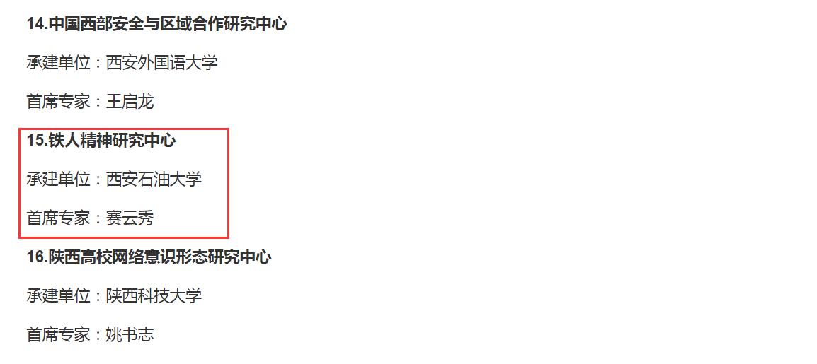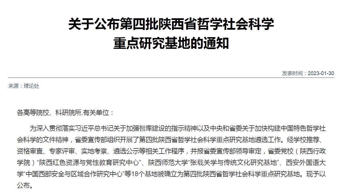 近日,省委宣传部发布了《关于公布第四批陕西省哲学社会科学重点研究基地的通知》,beat365官网马克思主义学院牵头申报的“铁人精神研究中心”被确立为第四批陕西省哲学社会科学重点研究基地。