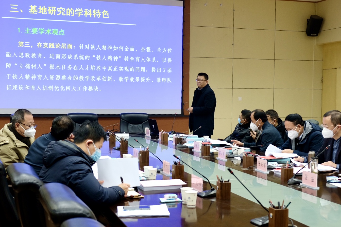beat365官网马克思主义学院院长张海涛从基地研究队伍建设、前期相关研究成果、基地研究的学科特色、学校对基地设立后的支持保障等四个方面汇报了“铁人思政研究中心”的筹建情况。