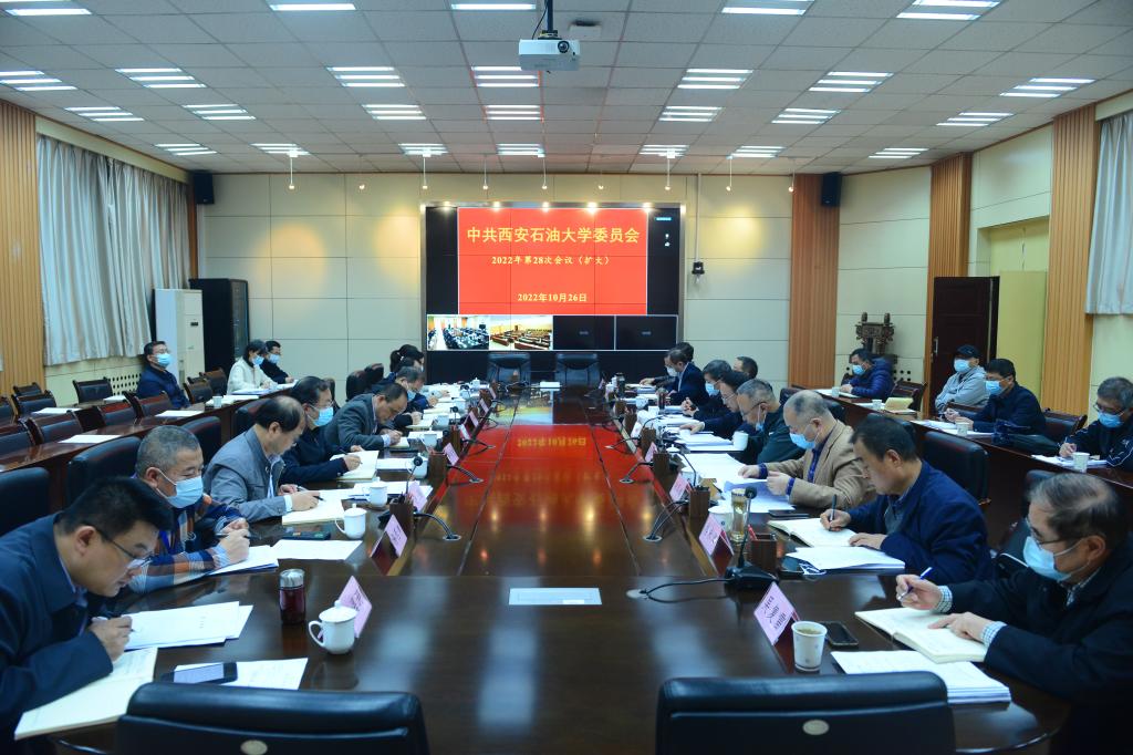10月26日下午,校党委(扩大)会暨党委理论学习中心组2022年第14次学习会在雁塔校区会议中心第二会议室、鄠邑校区图书馆第一会议室同步召开,传达学习党的二十大、党的二十届一中全会精神,传达学习省委常委会(扩大)会议精神,对全校学习宣传贯彻党的二十大精神作出安排部署,会议强调,全校上下要深入学习宣传贯彻党的二十大精神,努力推动学校各项事业高质量发展。校党政领导赛云秀、李天太、李延平、张木、杨战社、陈军斌、李华、程永清、张荣军、樊晓民,党委理论学习中心组成员,各院(系)级单位党组织书记参加会议。会议由校党委书记赛云秀主持。