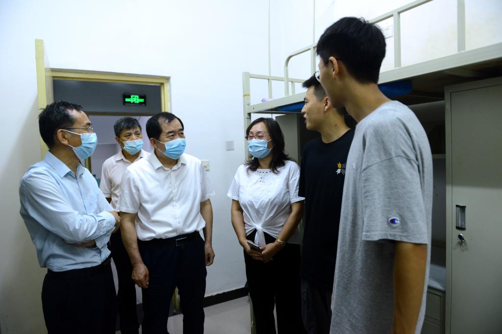 督导组按照工作分工,分组深入学生宿舍、学生食堂、隔离区、校医院、取水间、商业街、迎新现场等重点区域,通过现场察看、查阅资料、了解问询等形式,对学校疫情防控、传染病预防、校园安全、意识形态工作责任制、教育评价改革、突出问题专项治理、思政课教师和辅导员配备、绿色学校创建、师德师风三年行动、法治教育、高校教育事业统计及网信工作等方面工作的落实情况进行了全面督查,对发现的问题现场指导并提出具体整改意见。