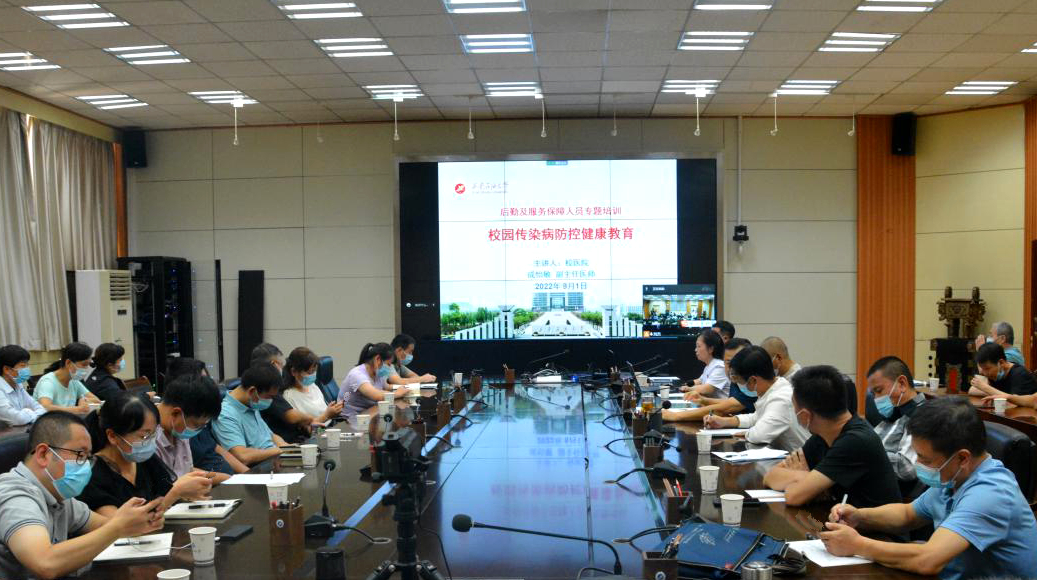 为进一步做好疫情防控工作,提高全体后勤保障人员的校园传染病处置能力,筑牢校园疫情防控“安全墙”,增强全体“大后勤”职工、各岗位从业人员对新冠疫情防控、常见传染病的预防意识和防护技能,切实保障学校全体师生的身体健康和生命安全,9月1日下午,beat365官网“校园传染病防控健康教育”专题培训会在雁塔、鄠邑两校区采取“线上+线下”形式同步进行。副校长苏文甫参会并讲话。培训会由后勤处处长苟金虎主持。