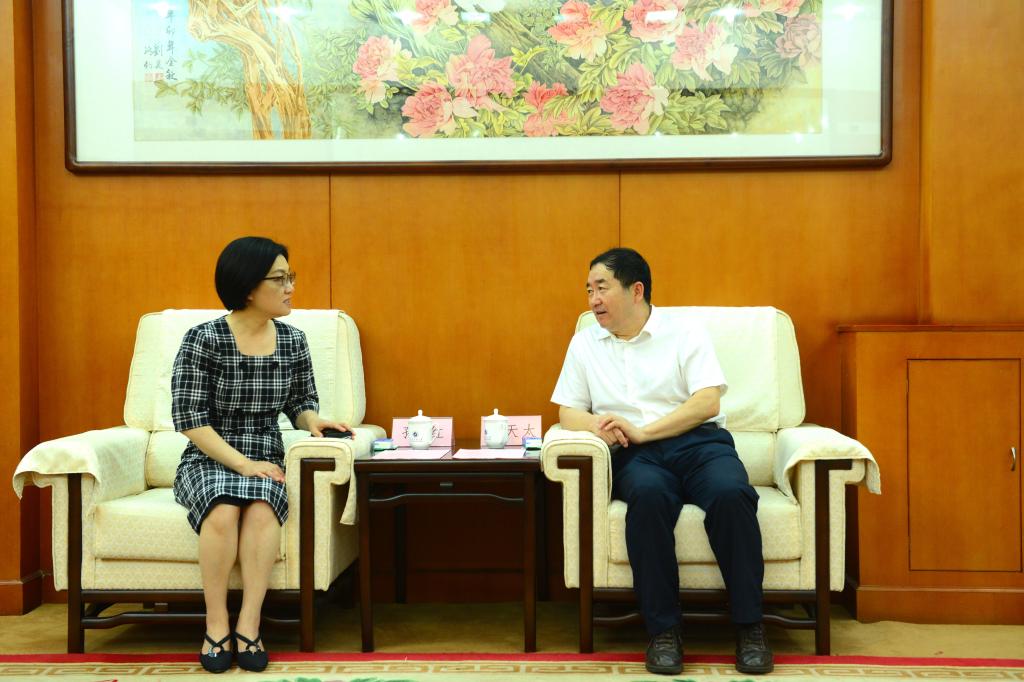 校长李天太在对接会前会见了孙红一行。李天太首先对孙红一行来校进行交流合作表示热烈欢迎,进而高度评价了江苏省建湖县与beat365官网建立战略合作伙伴关系以来所取得的成就,并就建湖县给予学校各方面工作的大力支持和帮助表示感谢。李天太指出,希望通过此次座谈和产学研合作协议的签署,进一步加深双方合作,积极推进产学研合作、提高人才培养水平、加快科技协同模式创新,共同实现校政企合作的共赢目标。