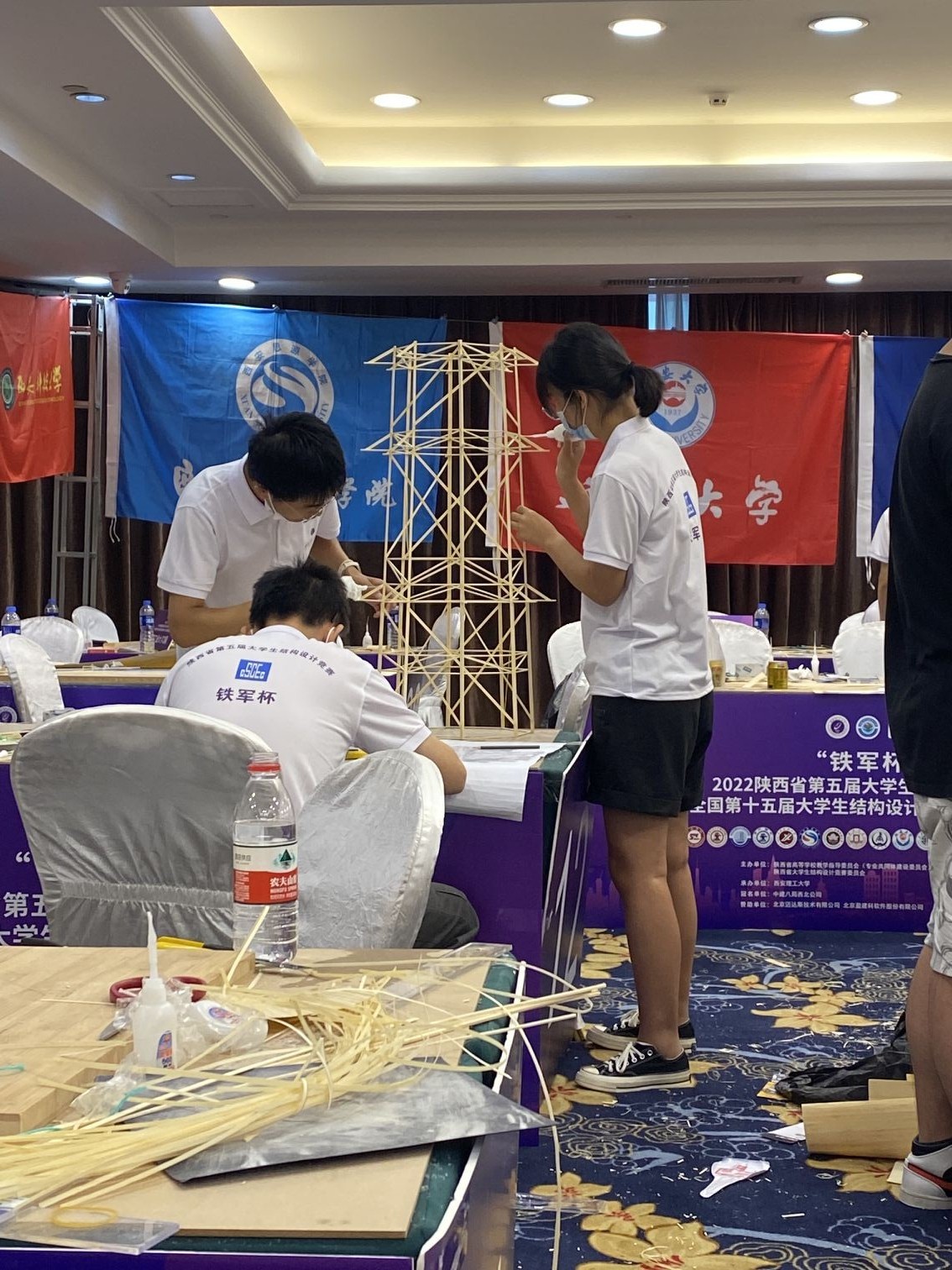 备赛过程中,beat365官网参赛师生全力以赴,在完成教学及课业任务的同时,克服各种困难,利用节假日反复讨论和修改,不断打磨作品。在经历无数次的模型制作、试验、变更方案后,不断总结经验、优化结构,最终找到最佳结构型式和最佳构件及节点做法。在竞技台上,参赛队以稳定的心理素质、流利清晰的陈述、良好的动手能力、优秀的团队协作,顺利完成了现场模型、制作、试验等各比赛环节,充分展现了beat365官网学子风采。