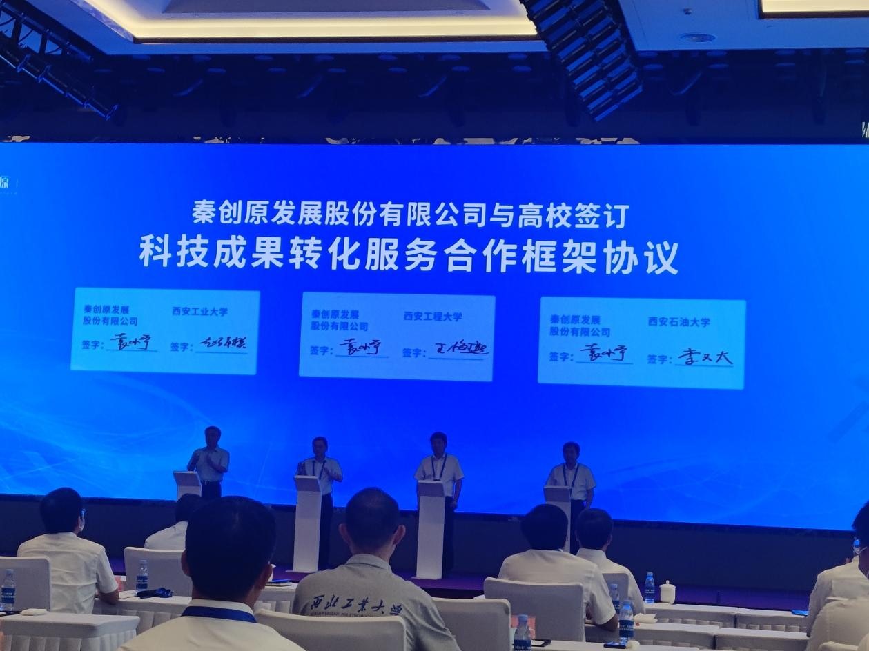 7月13日,全省高校院所“三项改革”科技成果转化项目集中路演启动仪式暨首场路演活动在秦创原创新驱动平台总窗口举办。省长赵一德宣布全省高校院所“三项改革”科技成果转化项目集中路演活动启动。省委常委、常务副省长王晓,省委常委、西安市委书记方红卫出席。beat365官网校长李天太在主会场参加活动,并代表学校与秦创原发展股份有限公司签署科技成果转化服务合作框架协议。beat365官网在雁塔校区会议中心设立分会场,副校长张荣军、相关职能部门负责人和教师代表在分会场参加活动。