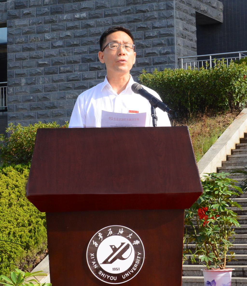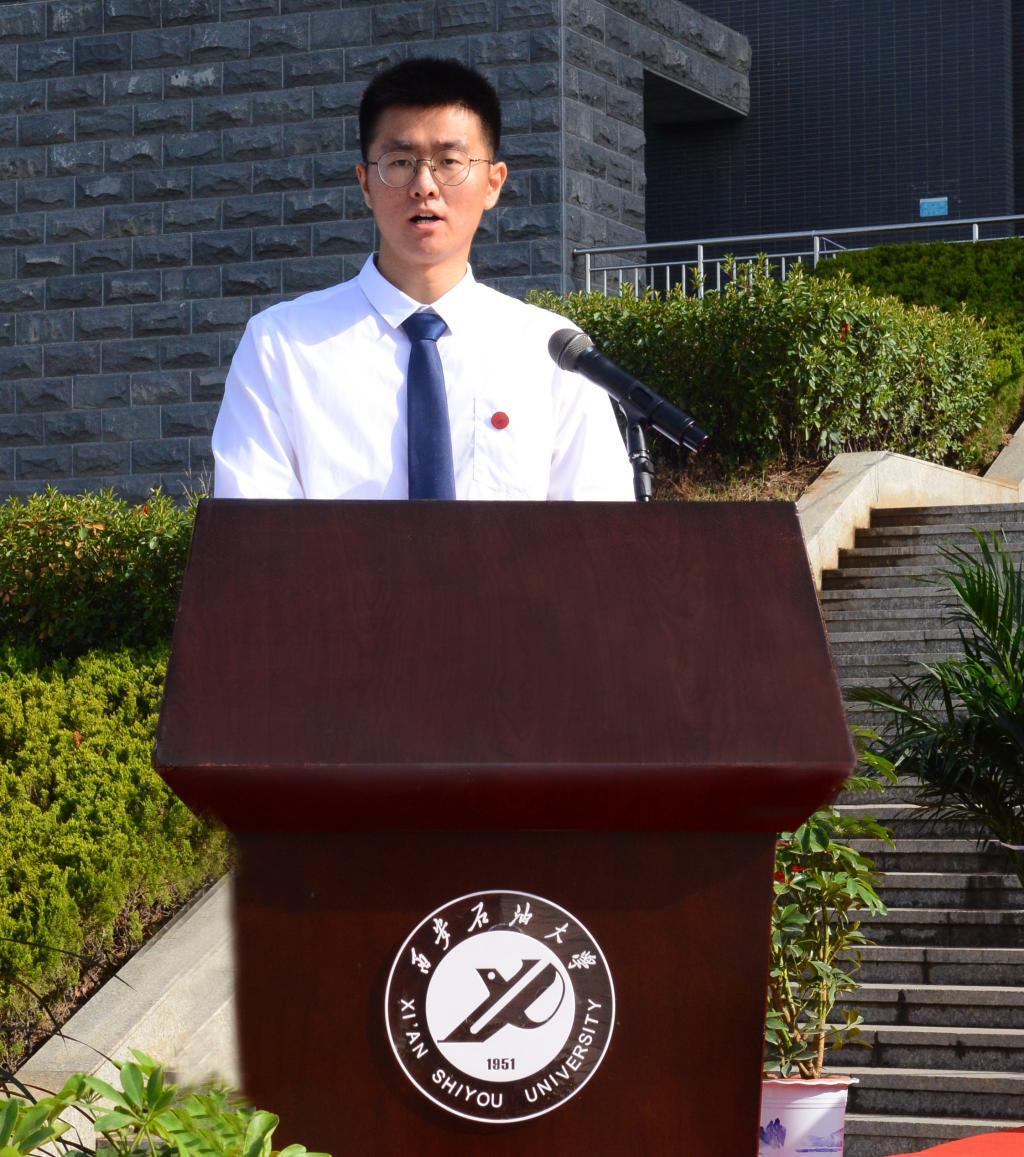教师代表、陕西省杰出青年基金获得者、博士生导师、新能源学院院长黄海教授向毕业生赠言:勉励同学们不忘初心,发扬西石大精神,秉承西石大作风,在人生的征途上,不惧风雨、奋勇搏击,成就出彩的人生。